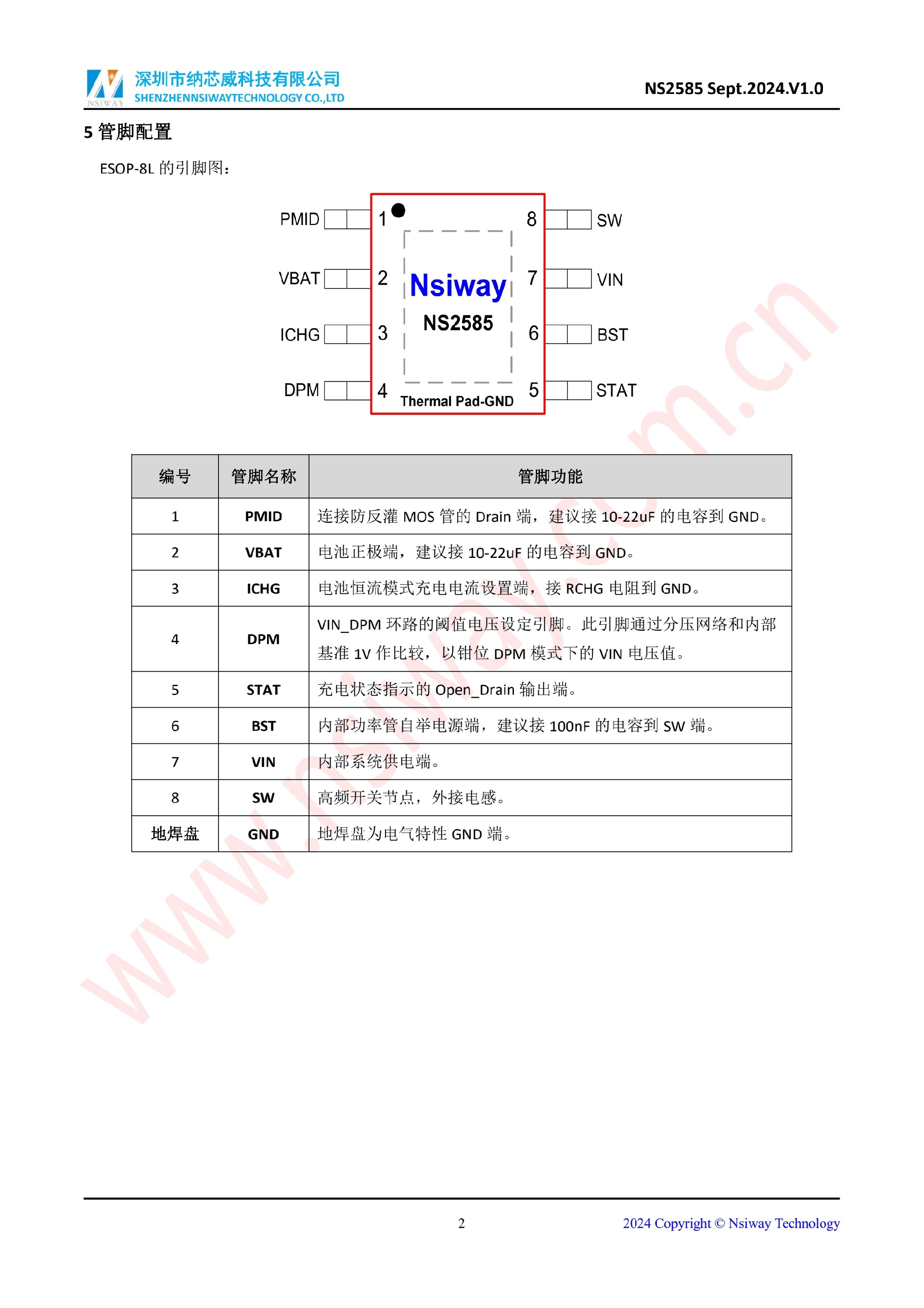 NS2585 最大2A同步升壓型雙節(jié)鋰電池充電管理 IC