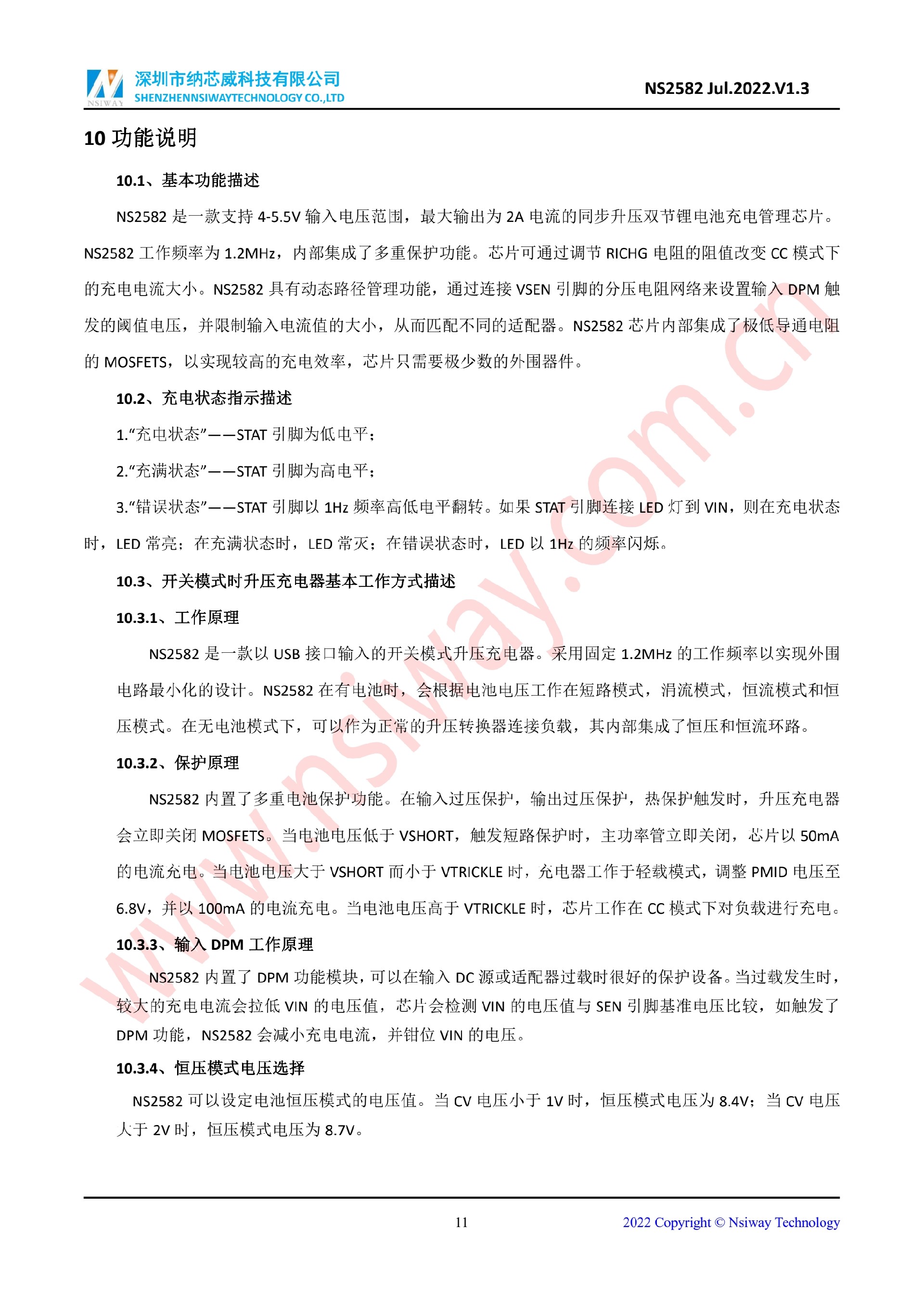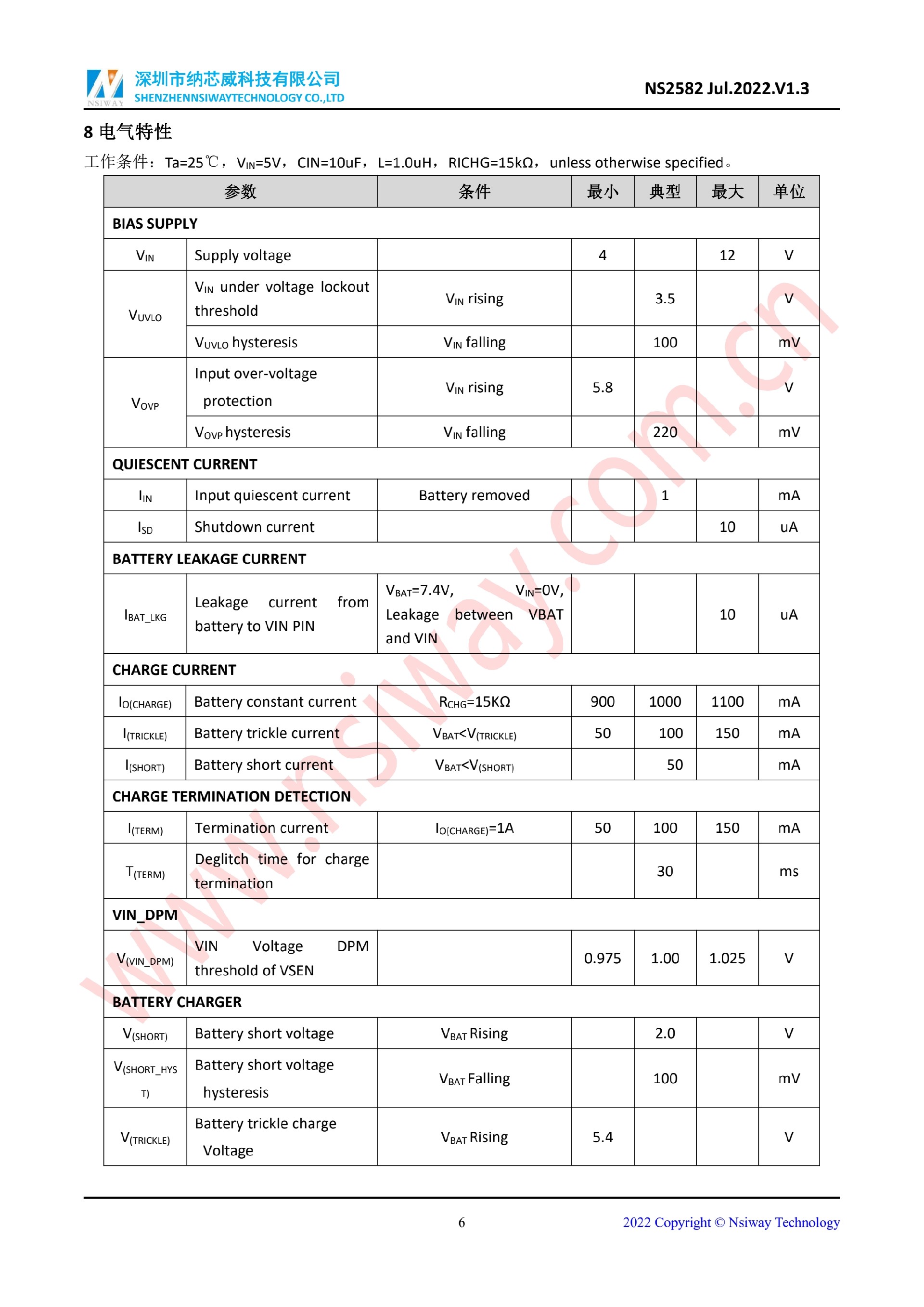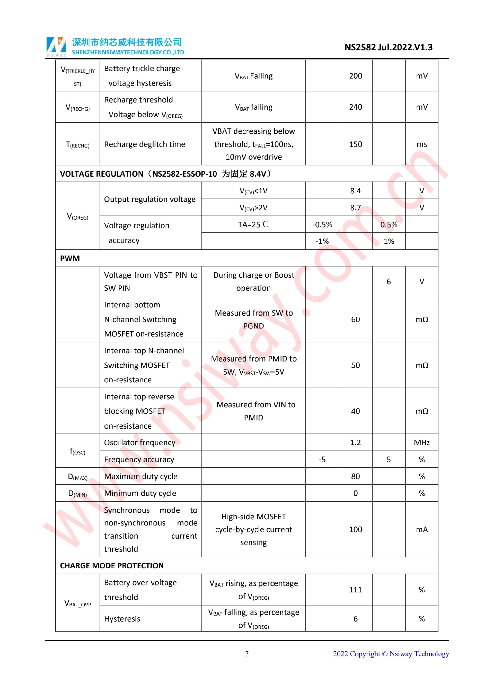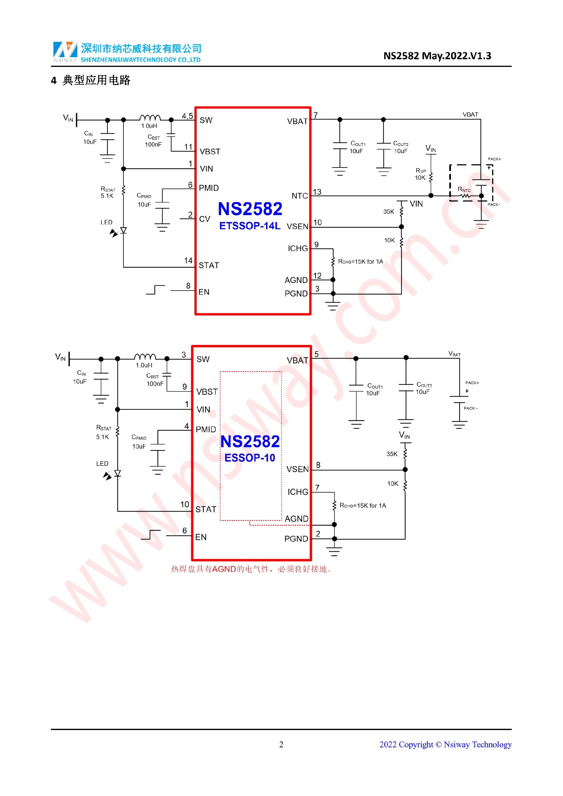 NS2582 同步升壓雙節鋰電池充電管理 IC