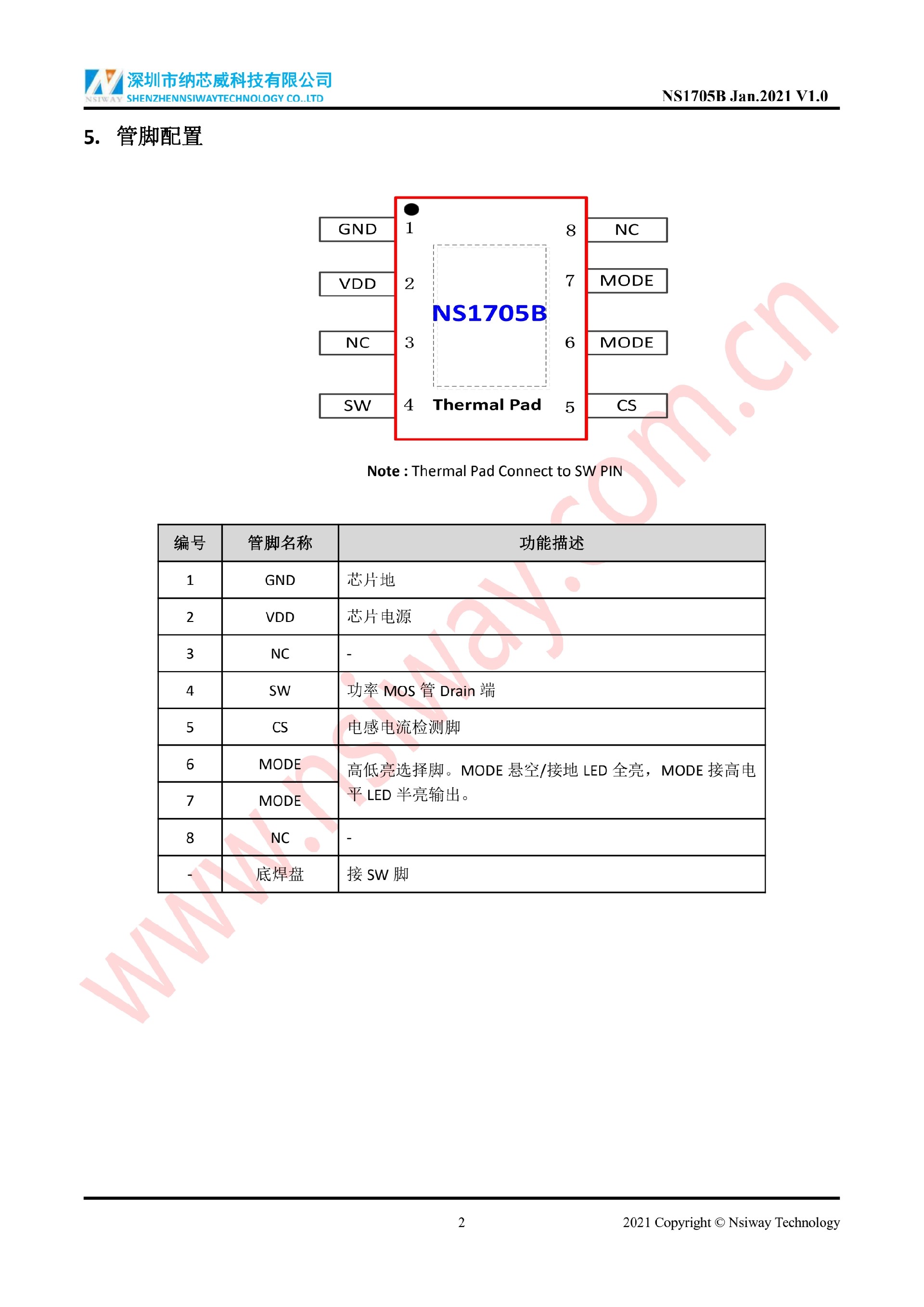 NS1705B 內置 MOS 管開關降壓型 LED 恒流驅動器
