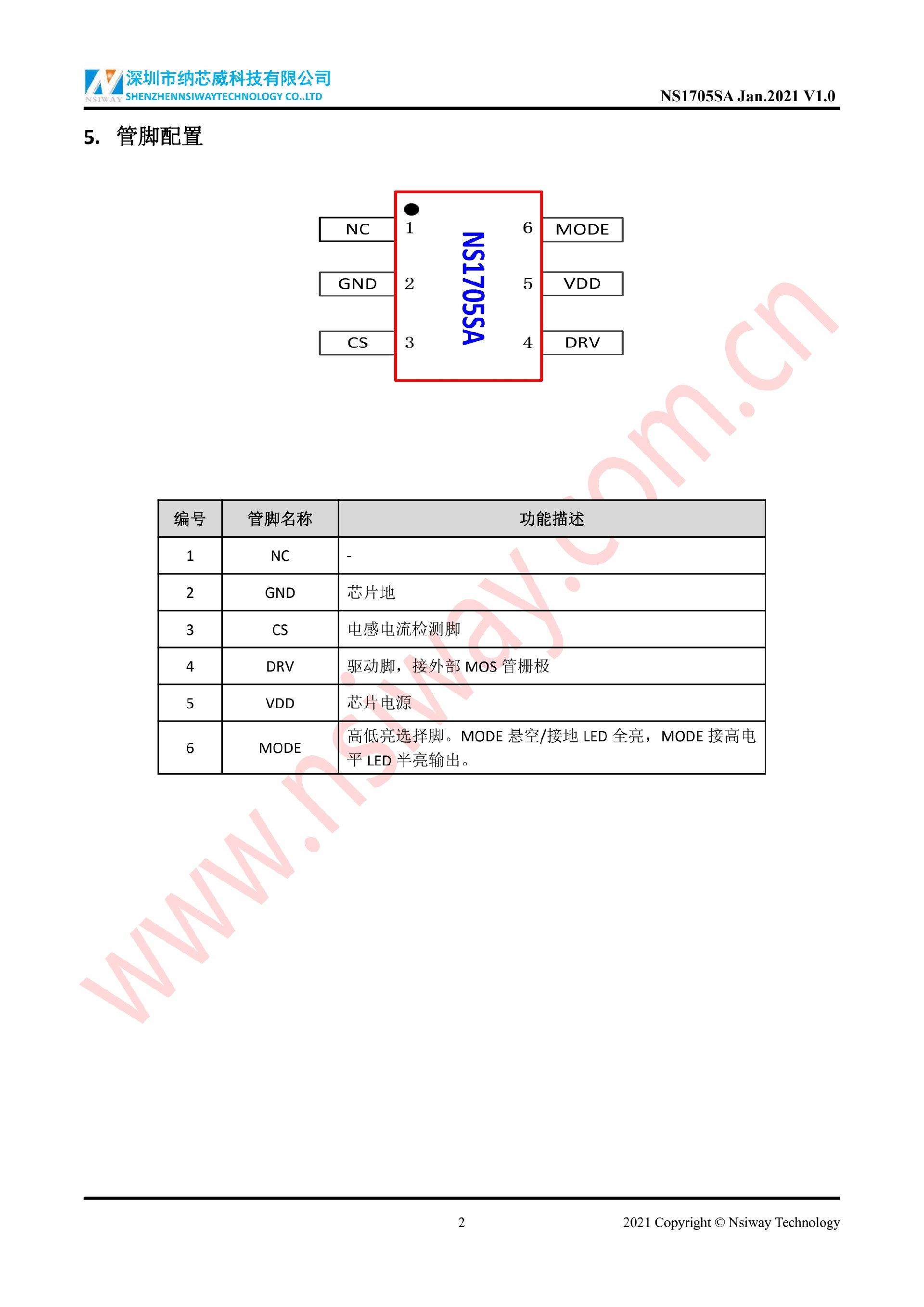 NS1705SA 外置 MOS 管開關降壓型 LED 恒流驅動器