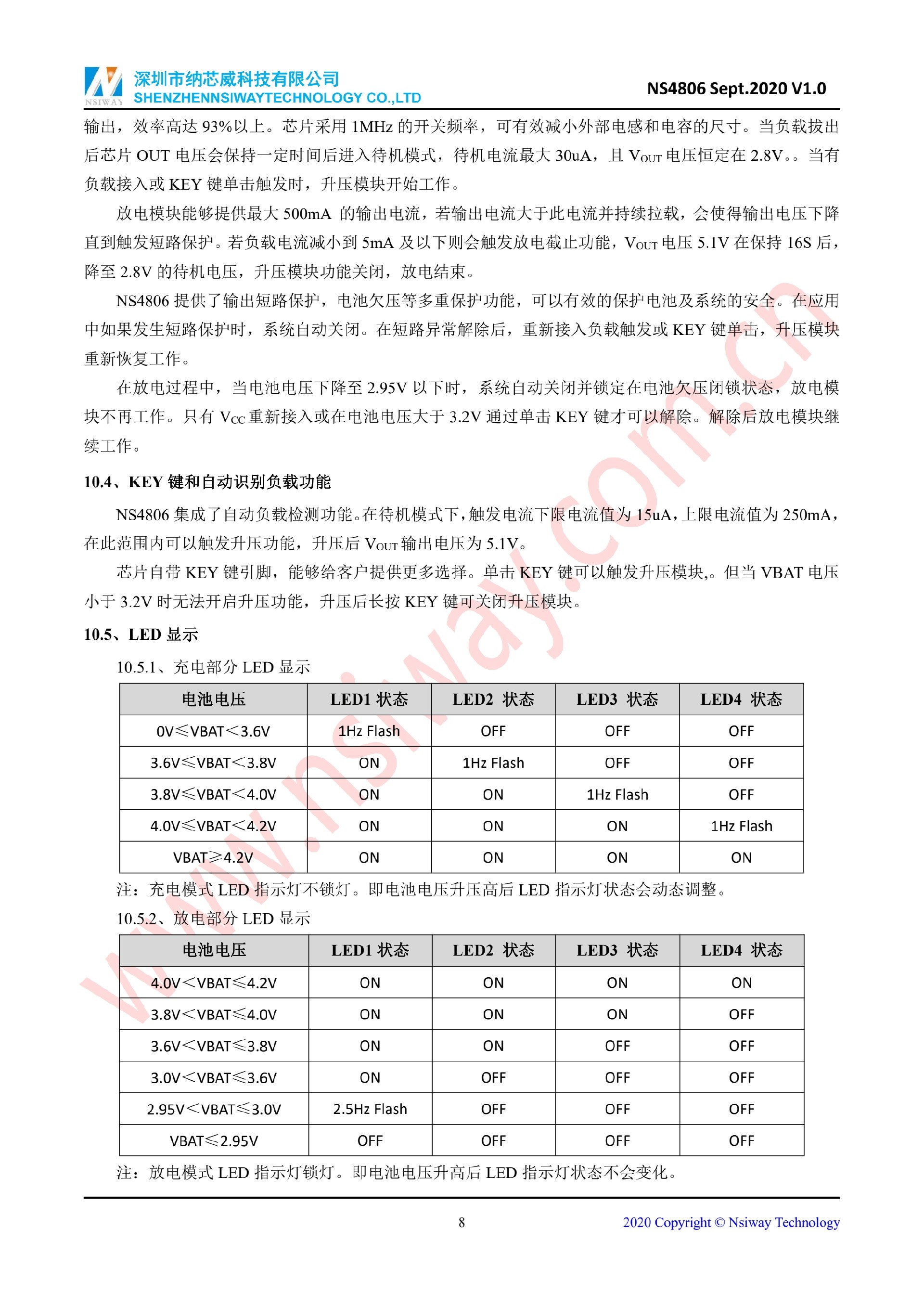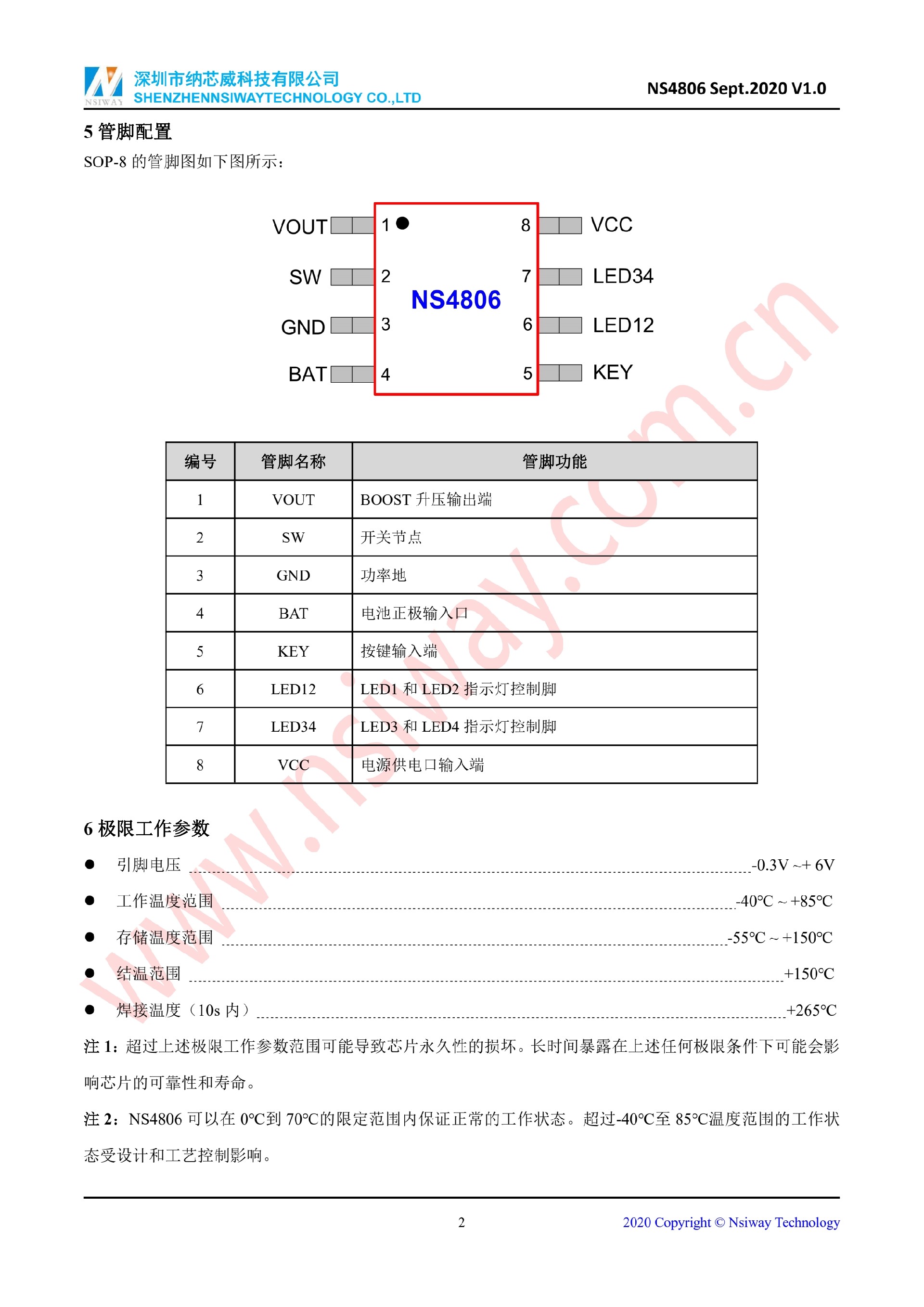 NS4806 4 LED 指示燈藍(lán)牙耳機(jī)充電倉--開關(guān)型鋰電池充放電管理 IC