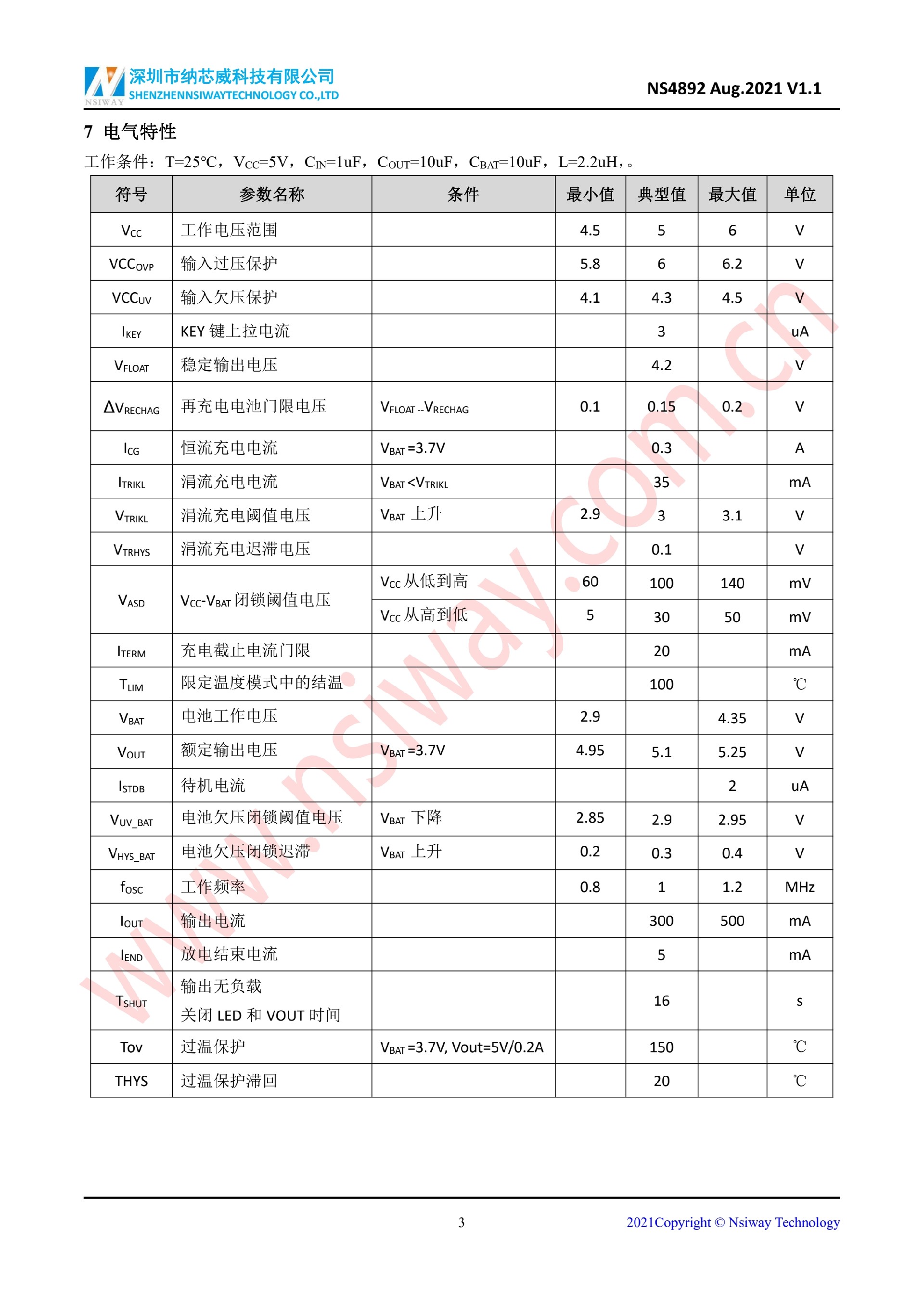 NS4892 藍牙耳機充電倉-線性鋰電池充放電管理 IC
