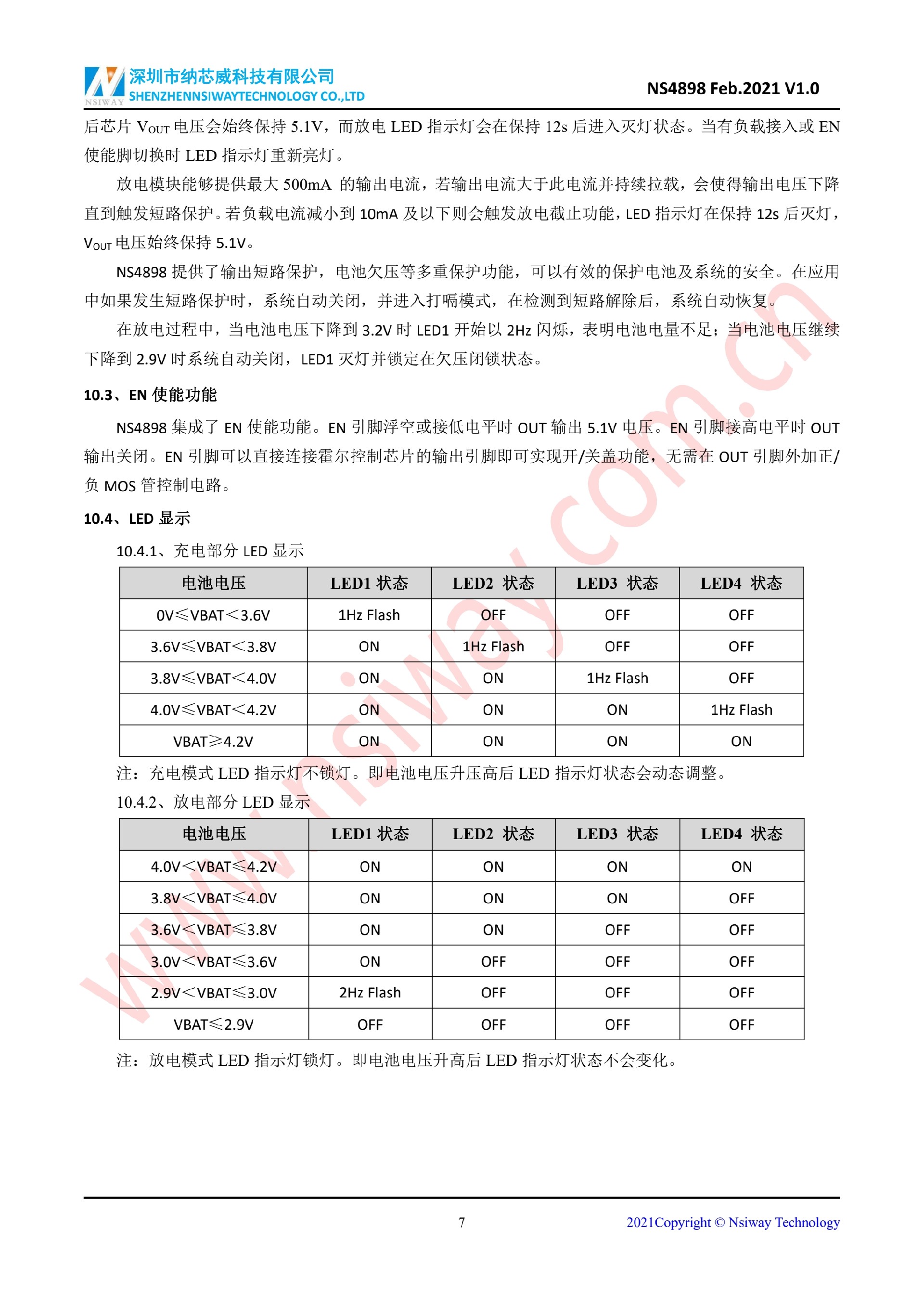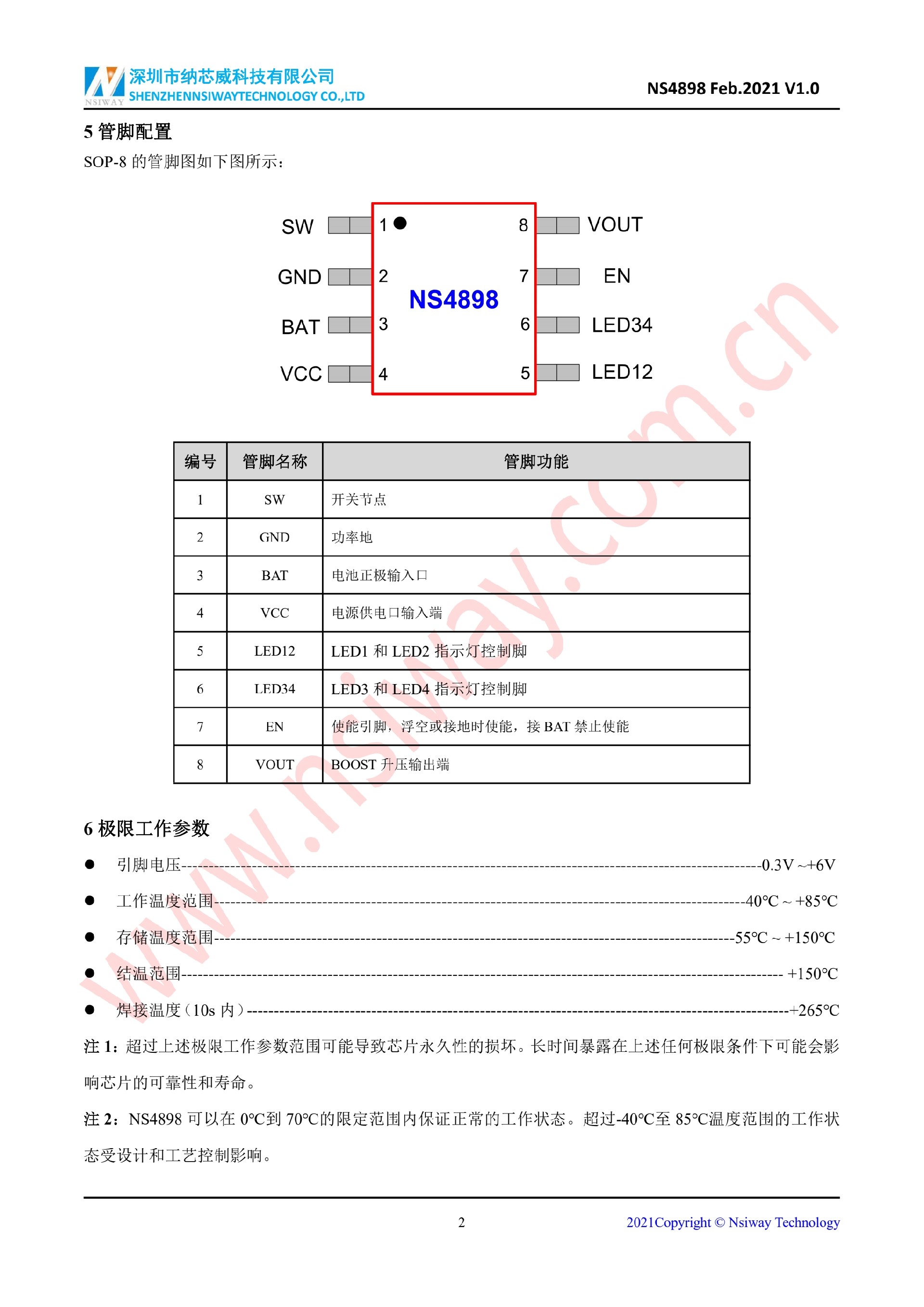 NS4898 4LED 帶使能功能 5V 常開線性鋰電池充放電管理 IC