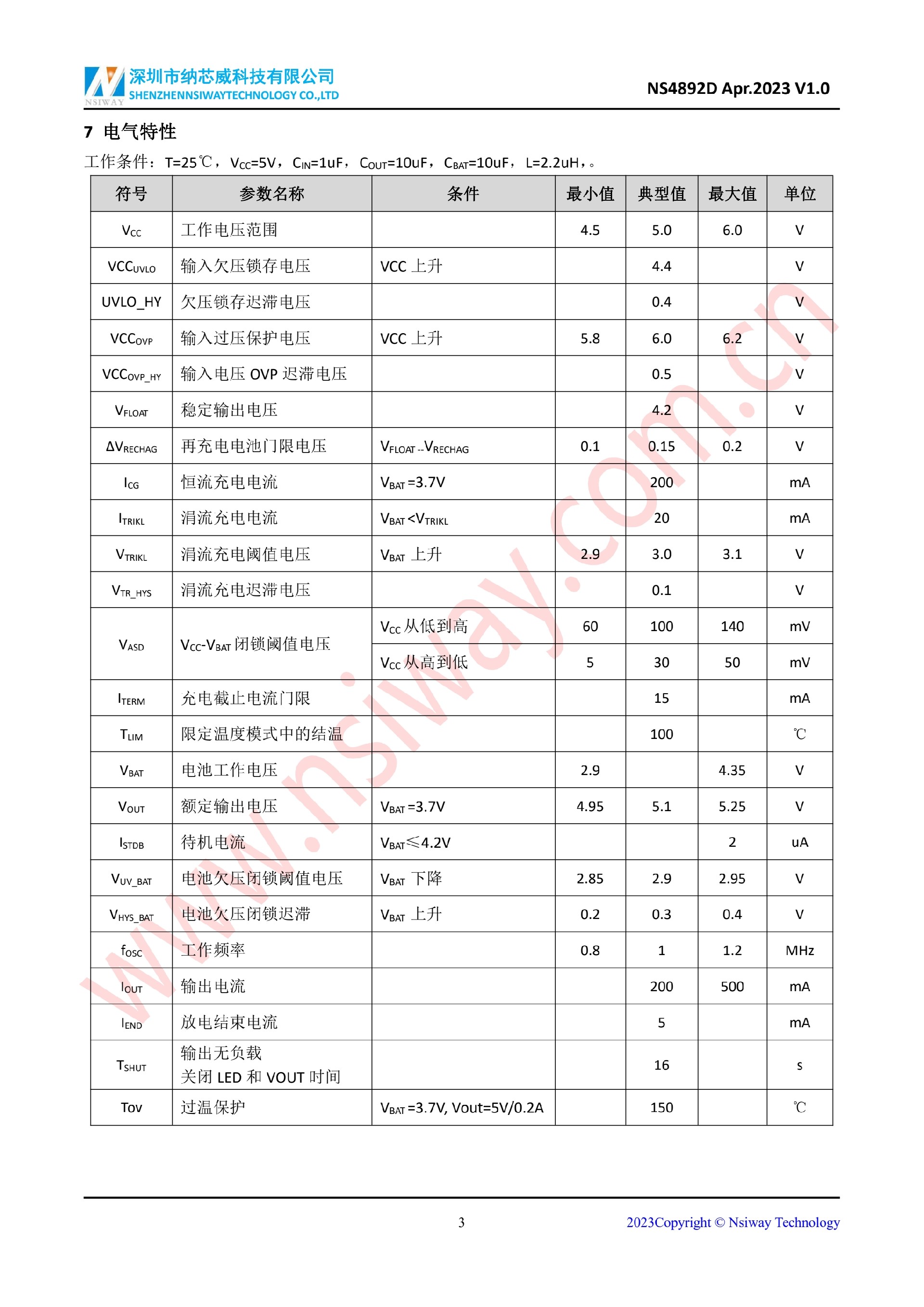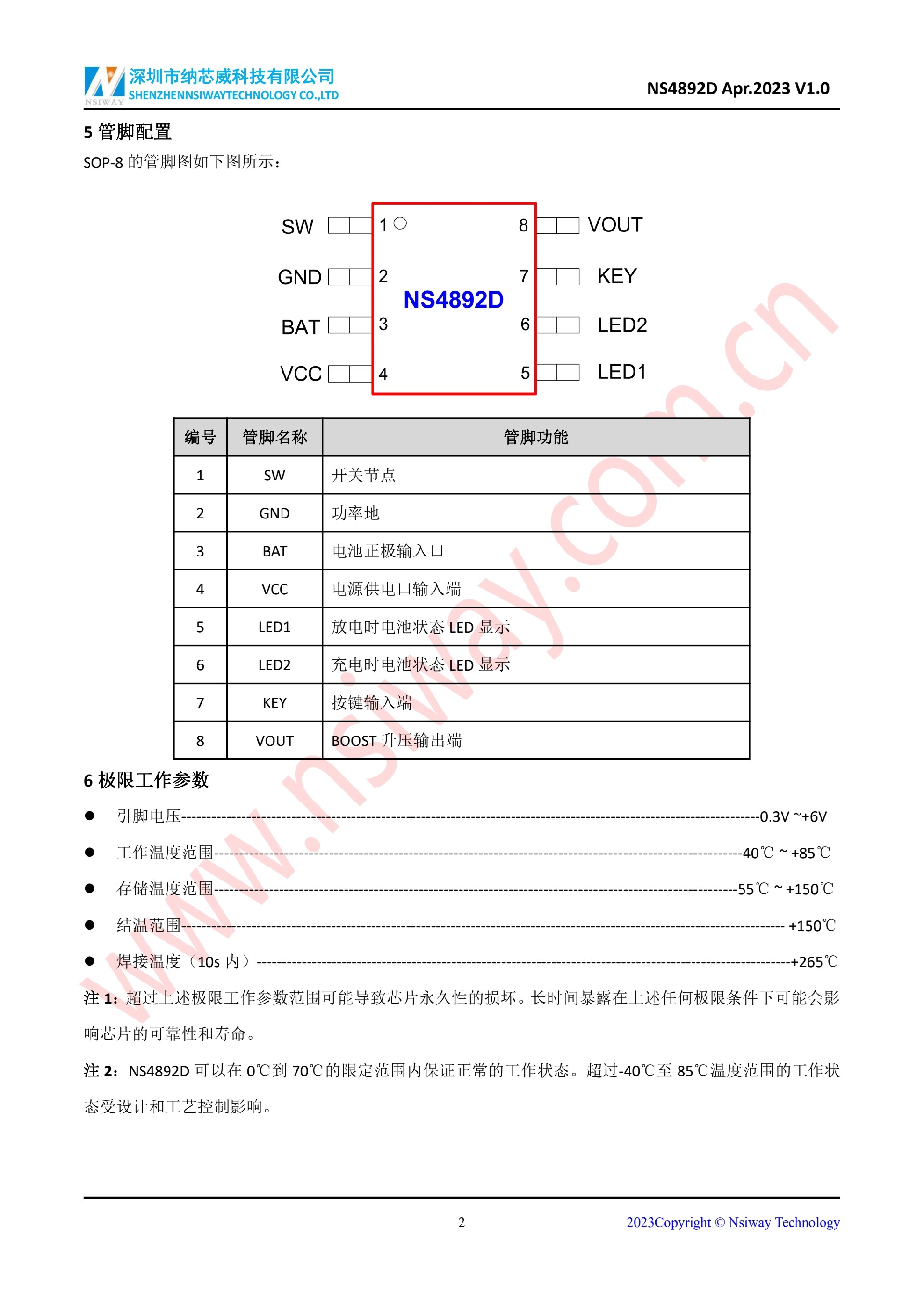 NS4892D 200mA-線性鋰電池充放電管理 IC