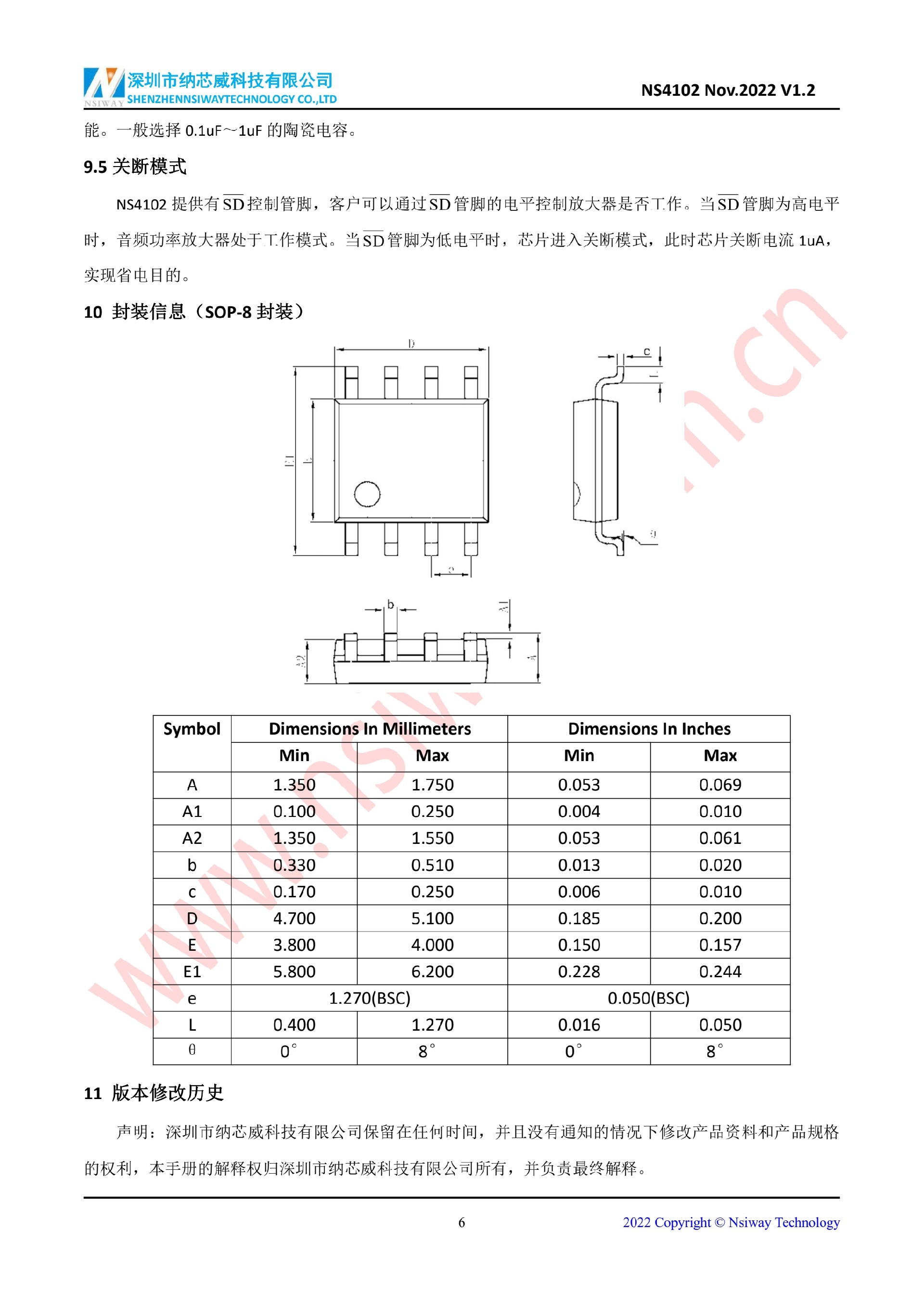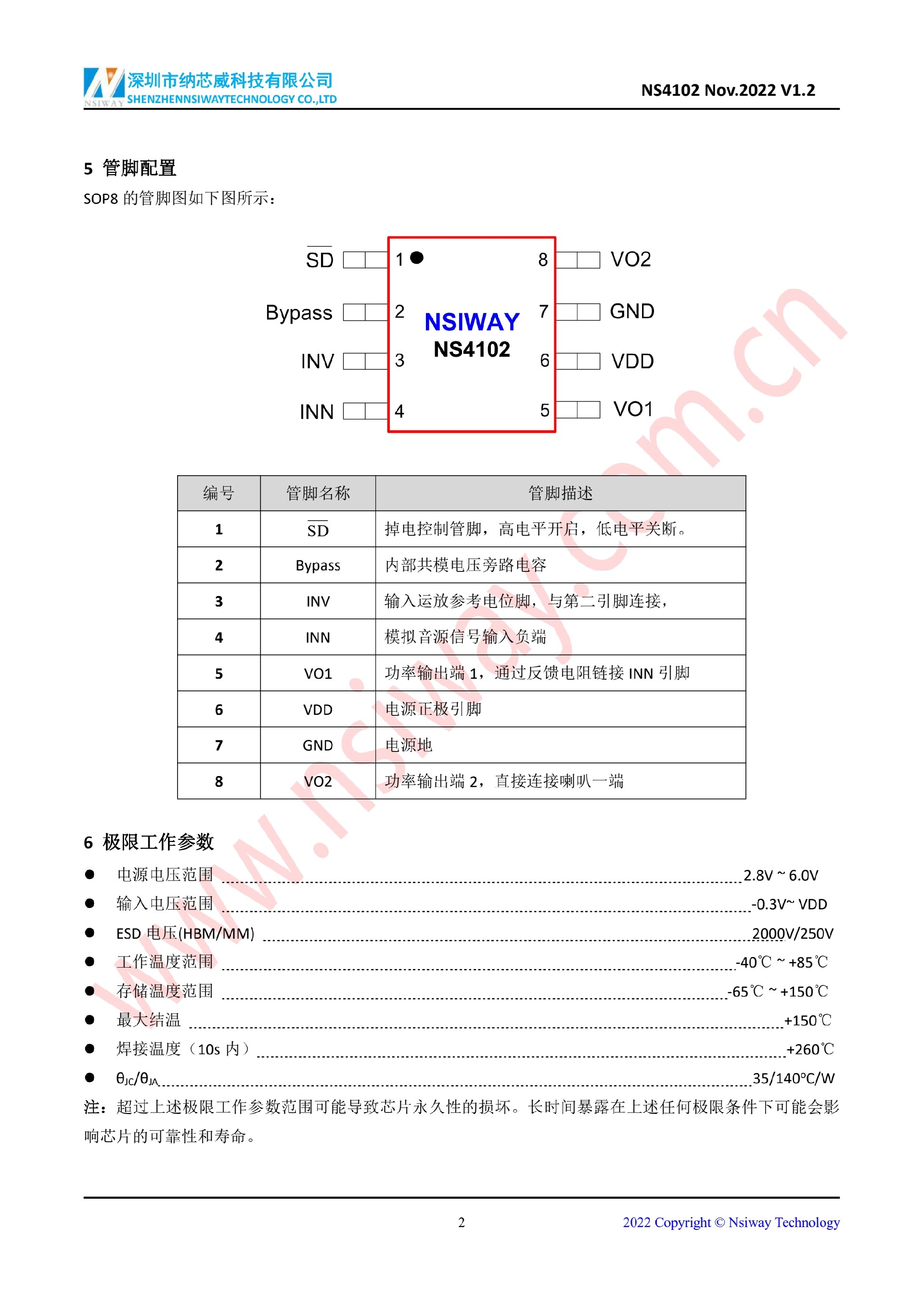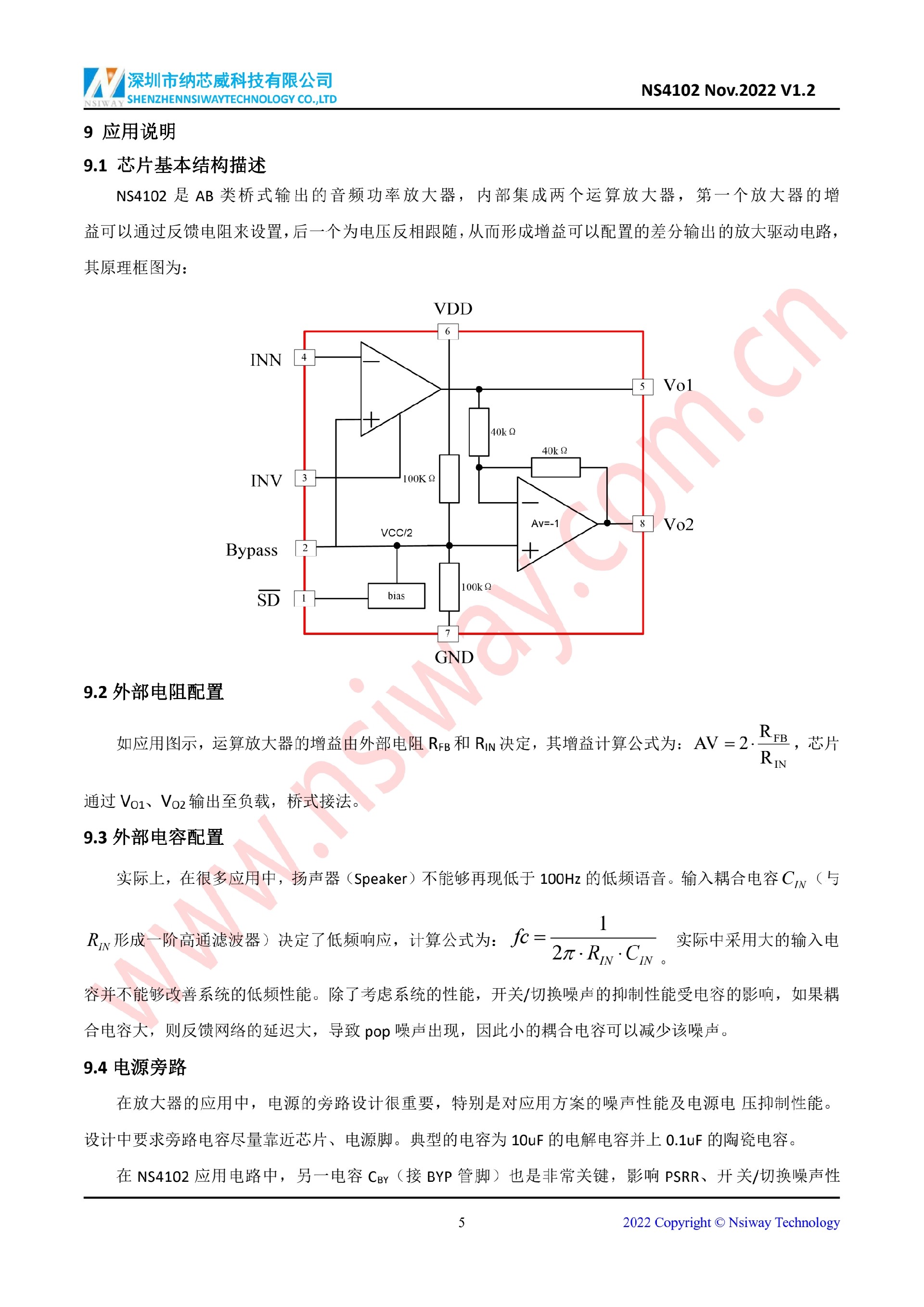 NS4102 2.4W 單聲道 AB 類音頻功率放大器