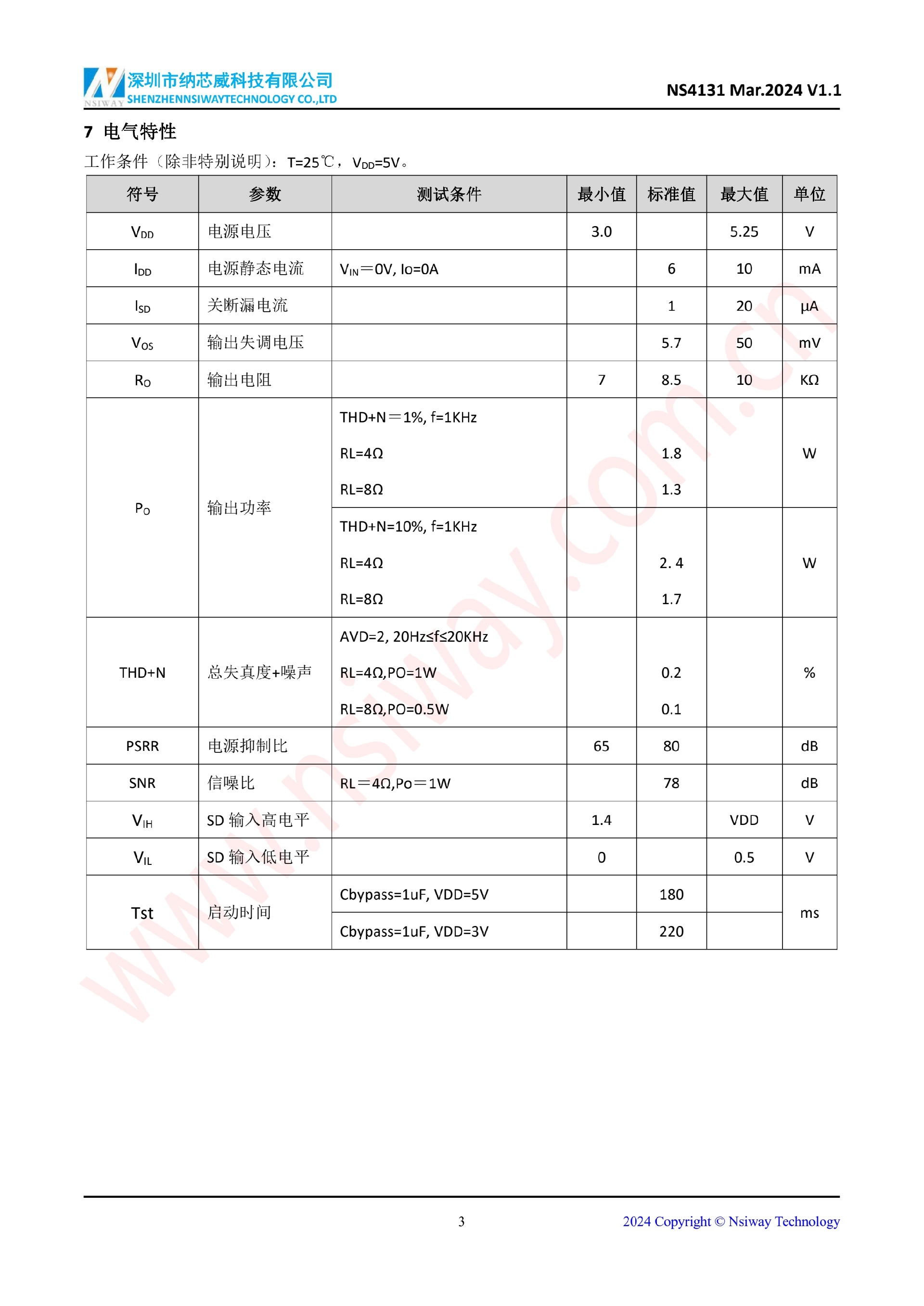 NS4131 2.4W 單聲道 AB 類音頻功率放大器