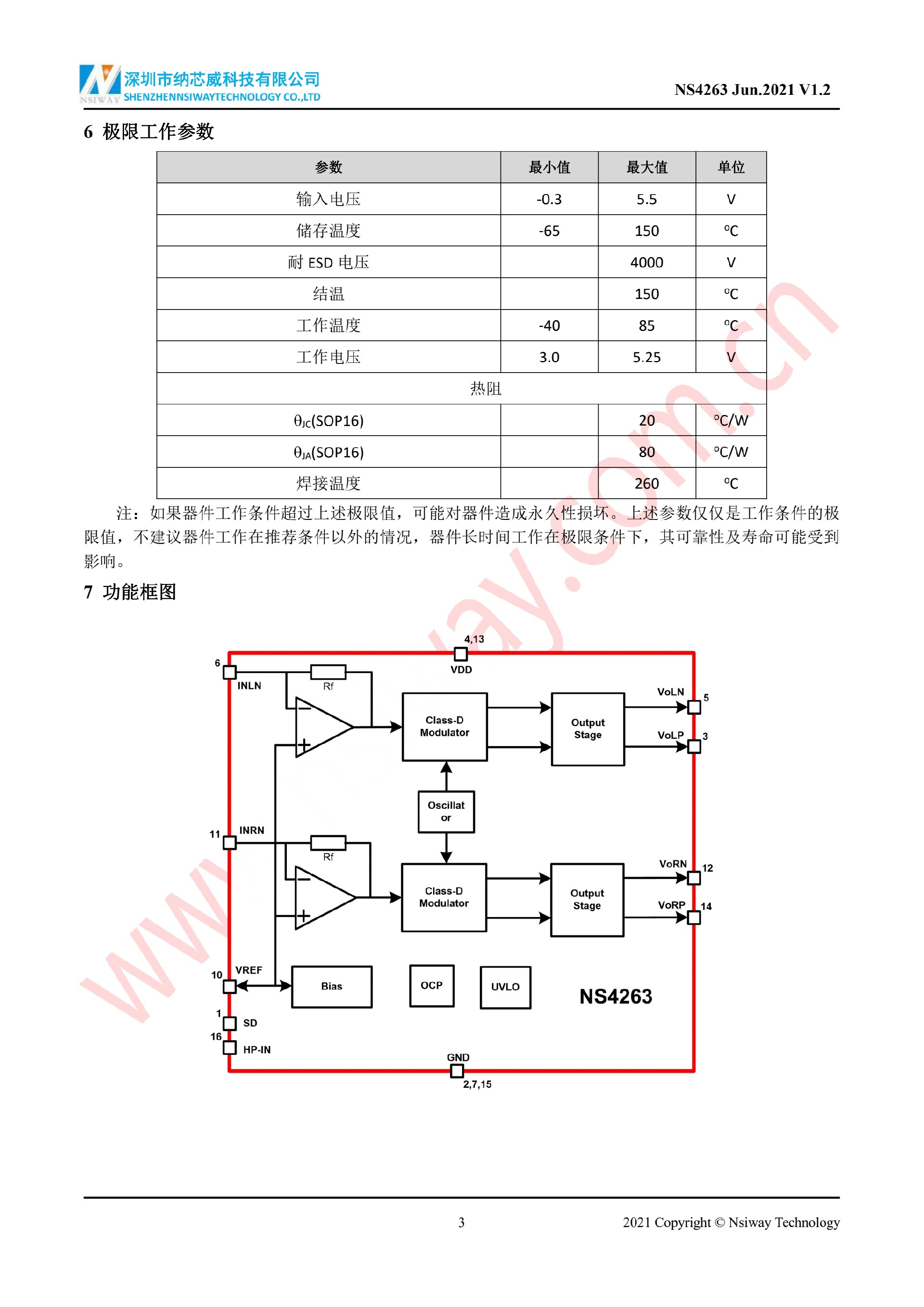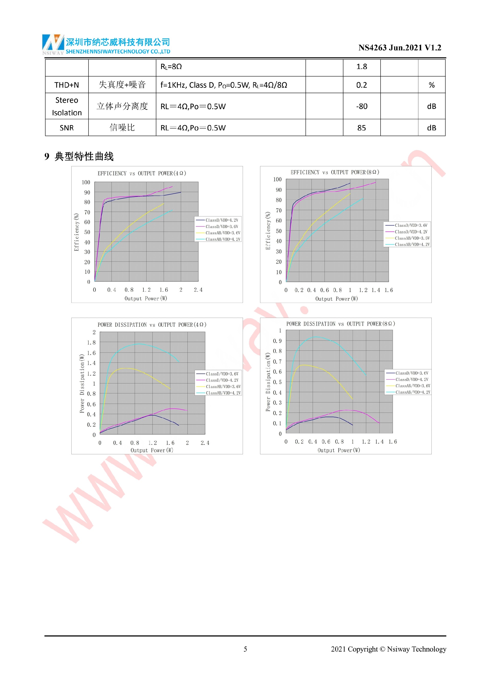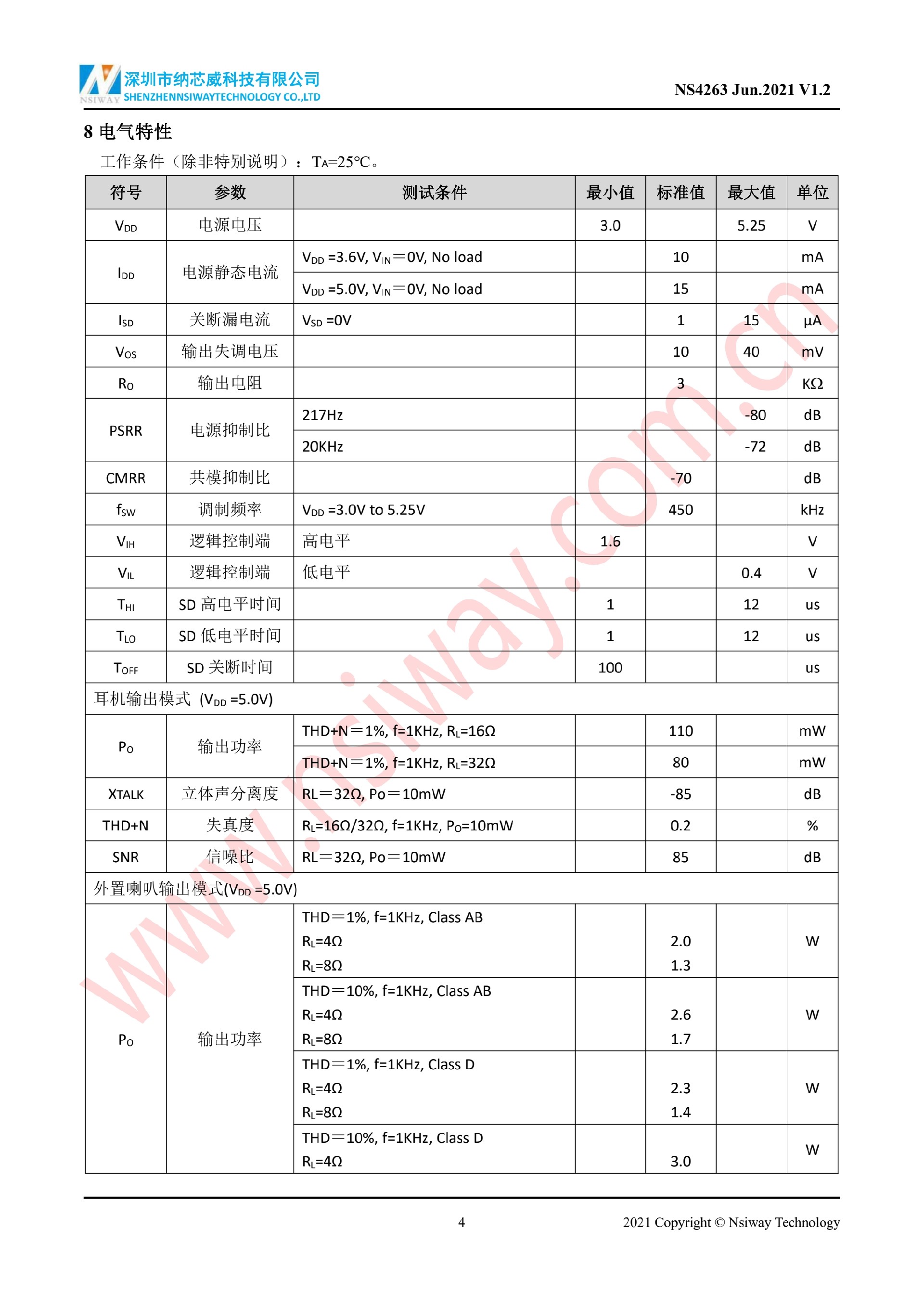 NS4263B 3.1Wx2 雙聲道 AB/D 類雙模音頻功率放大器附加耳機(jī)模式