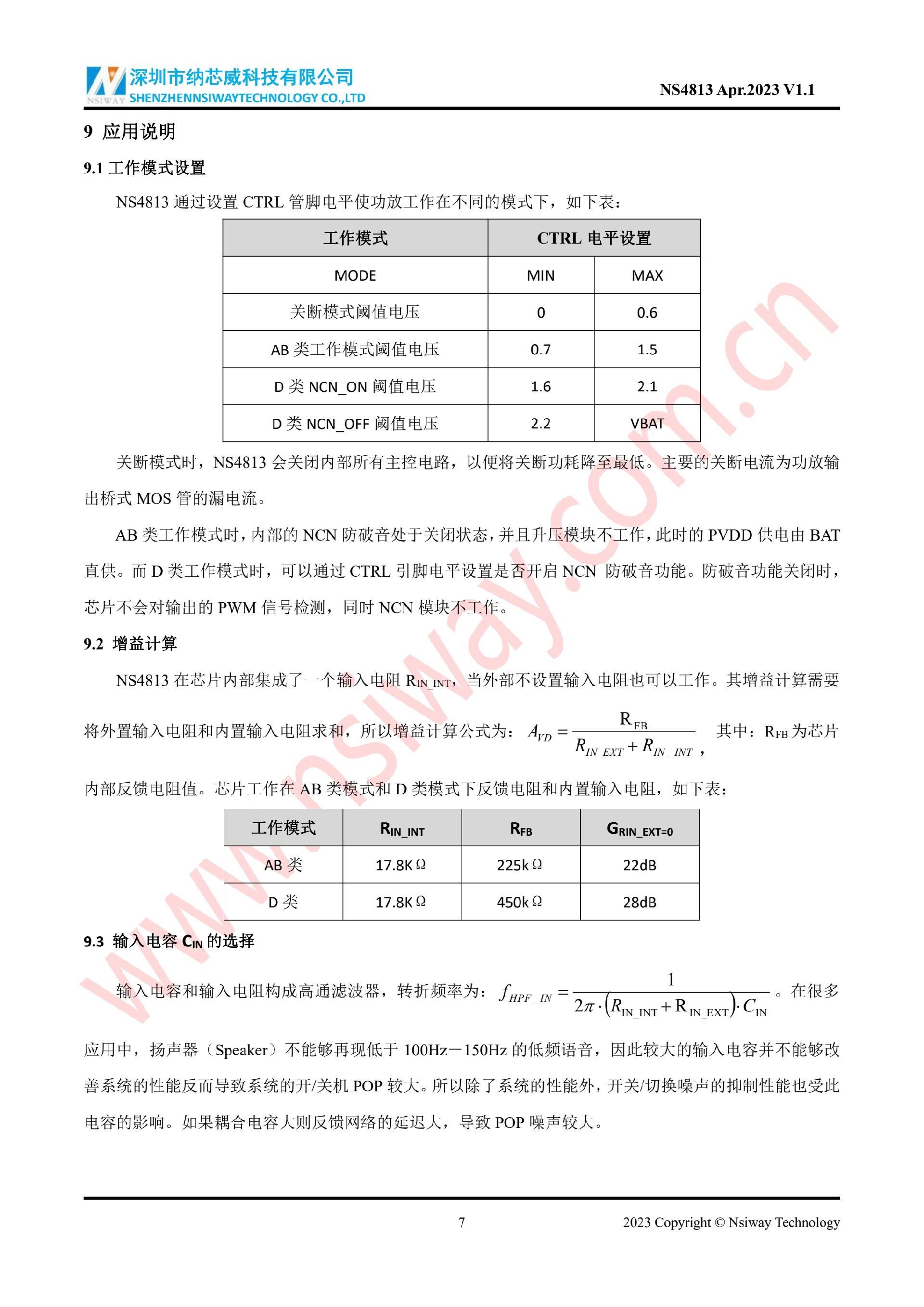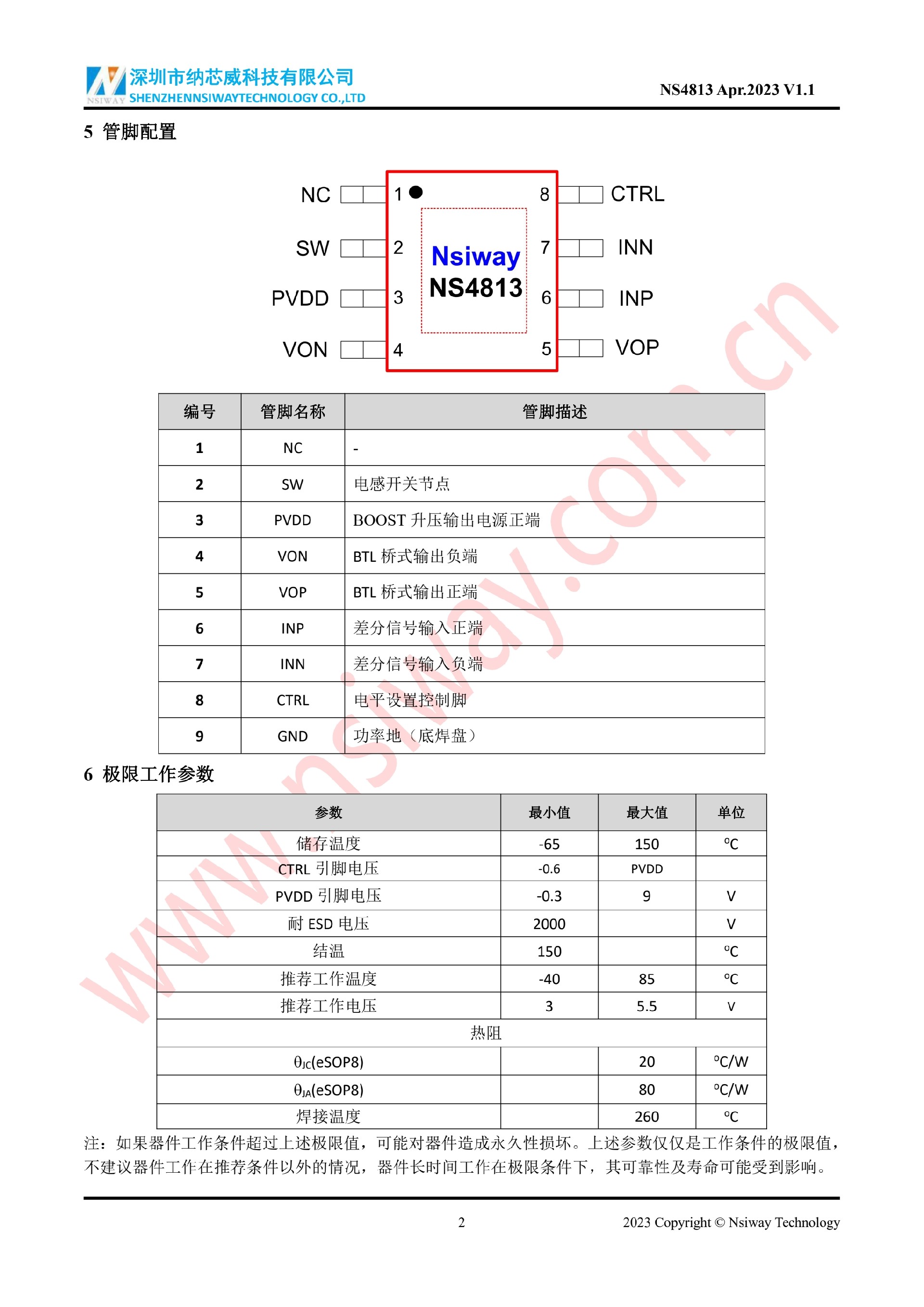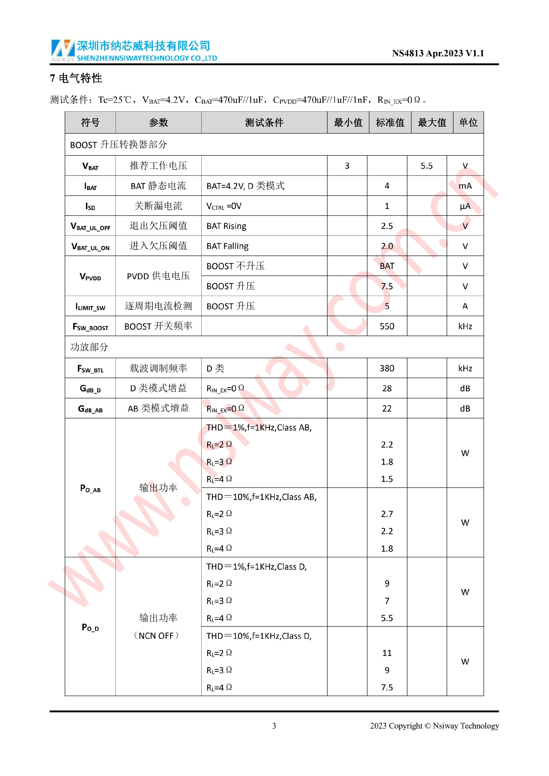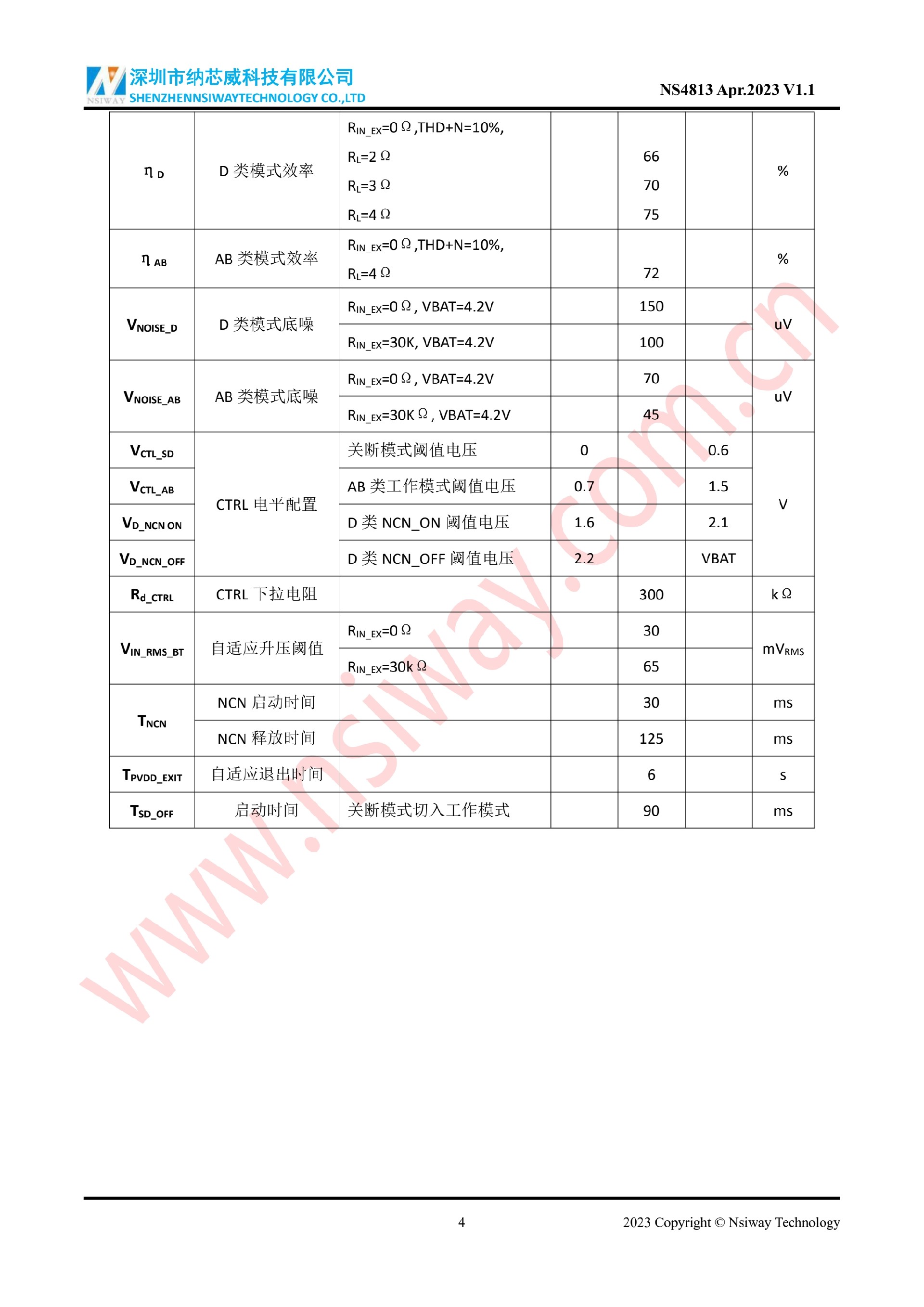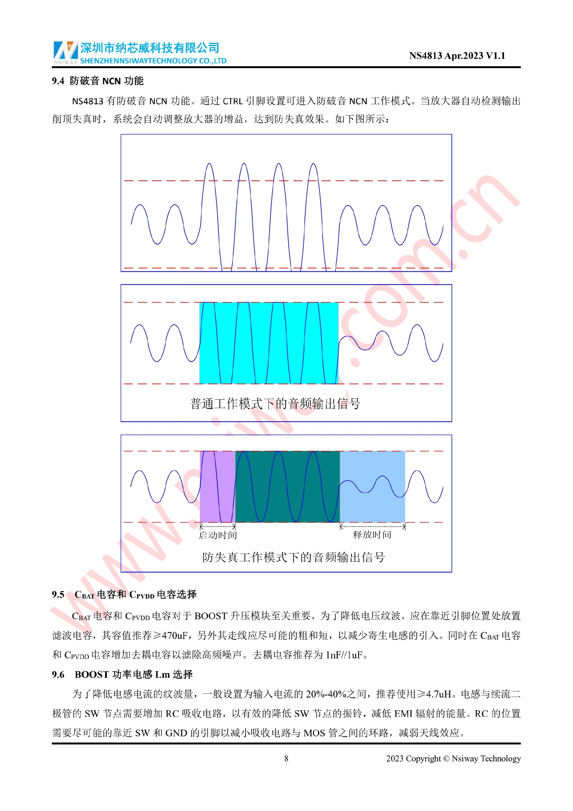 NS4813 單聲道AB/D 類音頻功率放大器(內置BOOST升壓和NCN 功能)