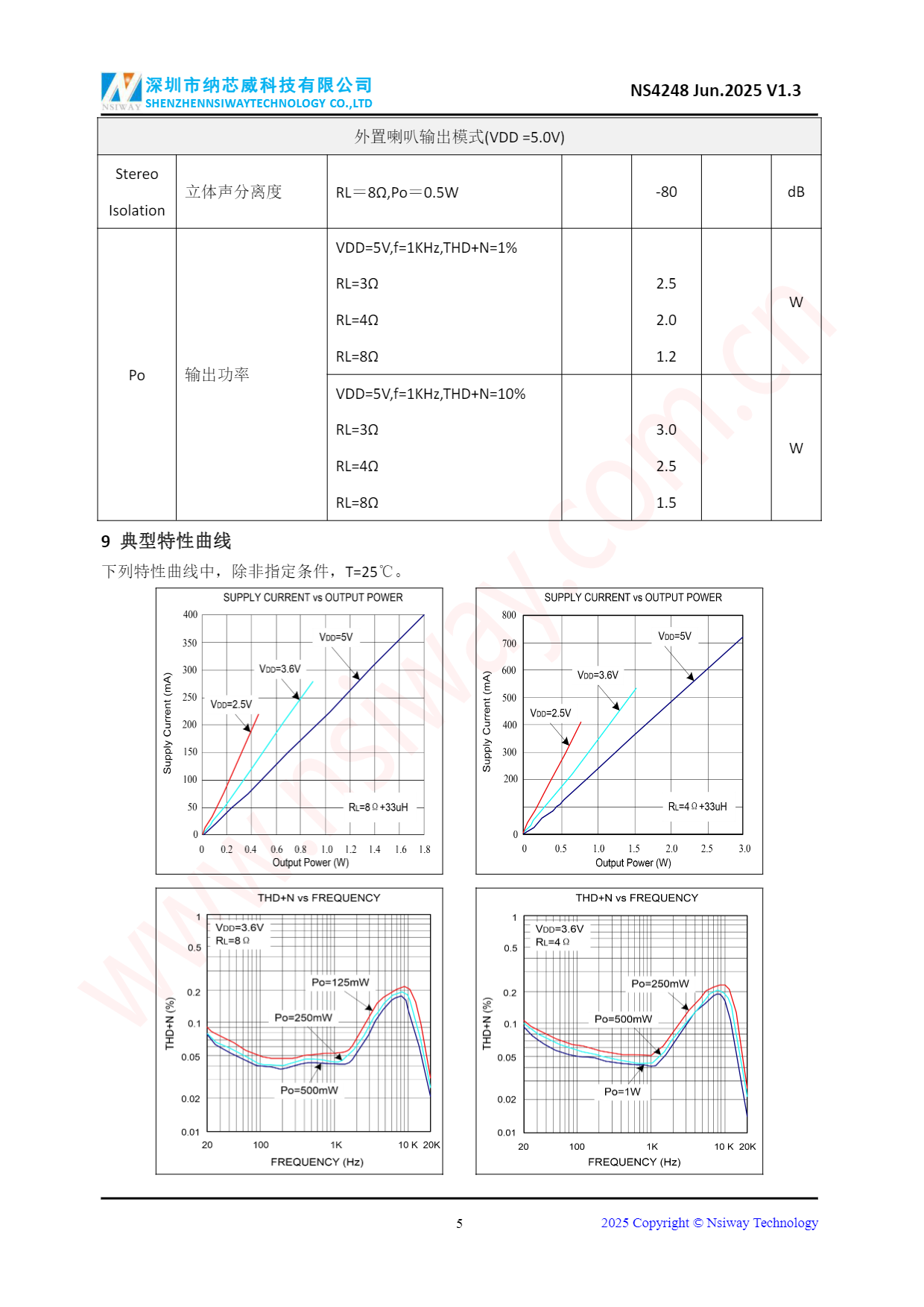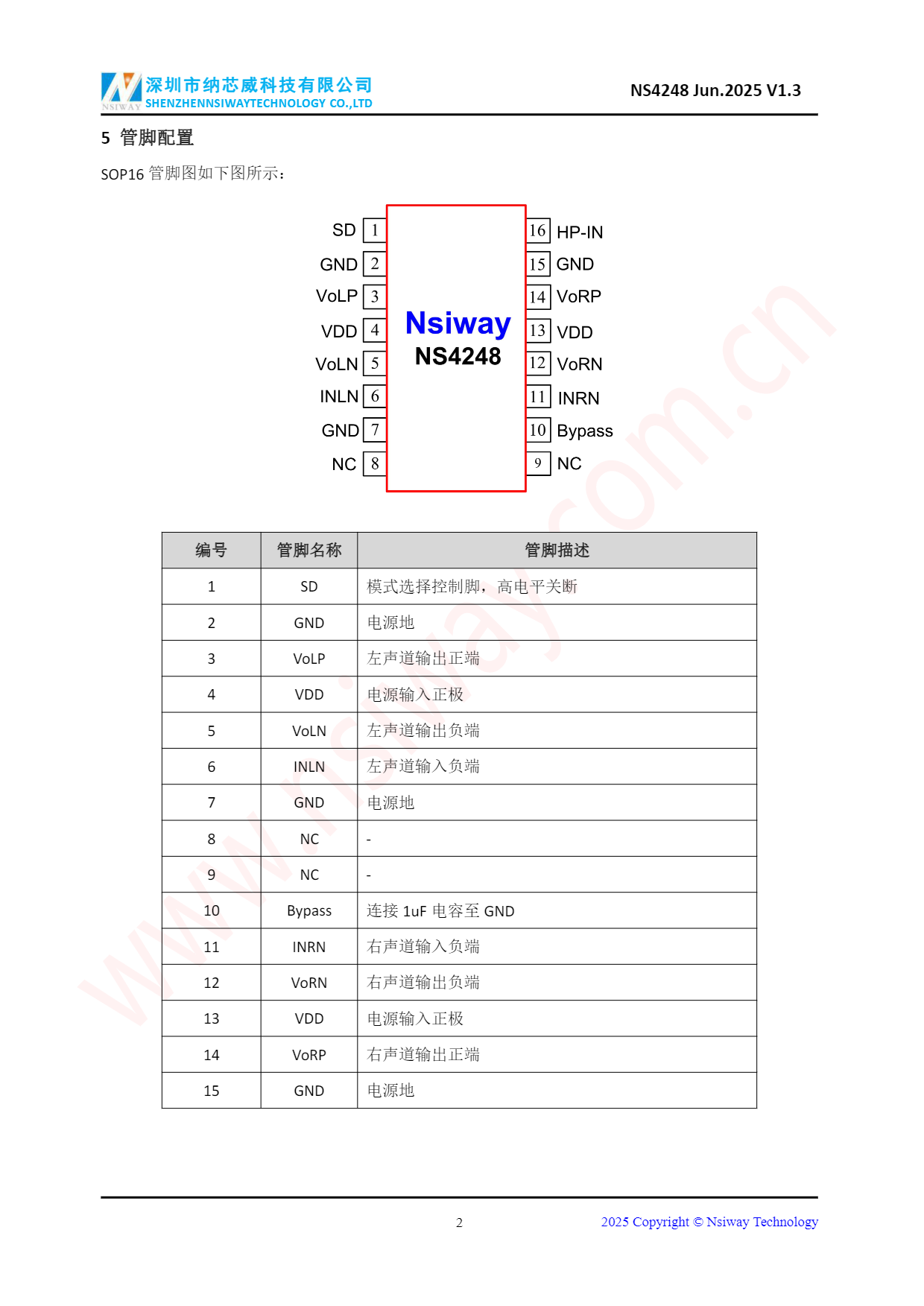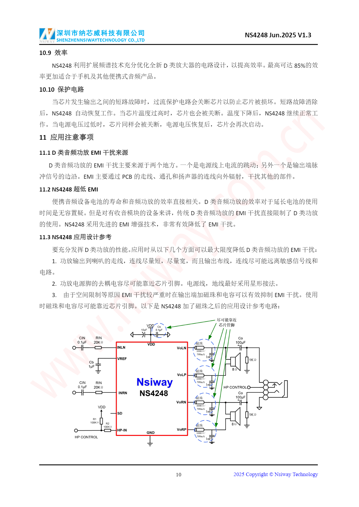 NS4248 3.0W×2 雙聲道 D 類音頻功率放大器附加立體聲耳機功能