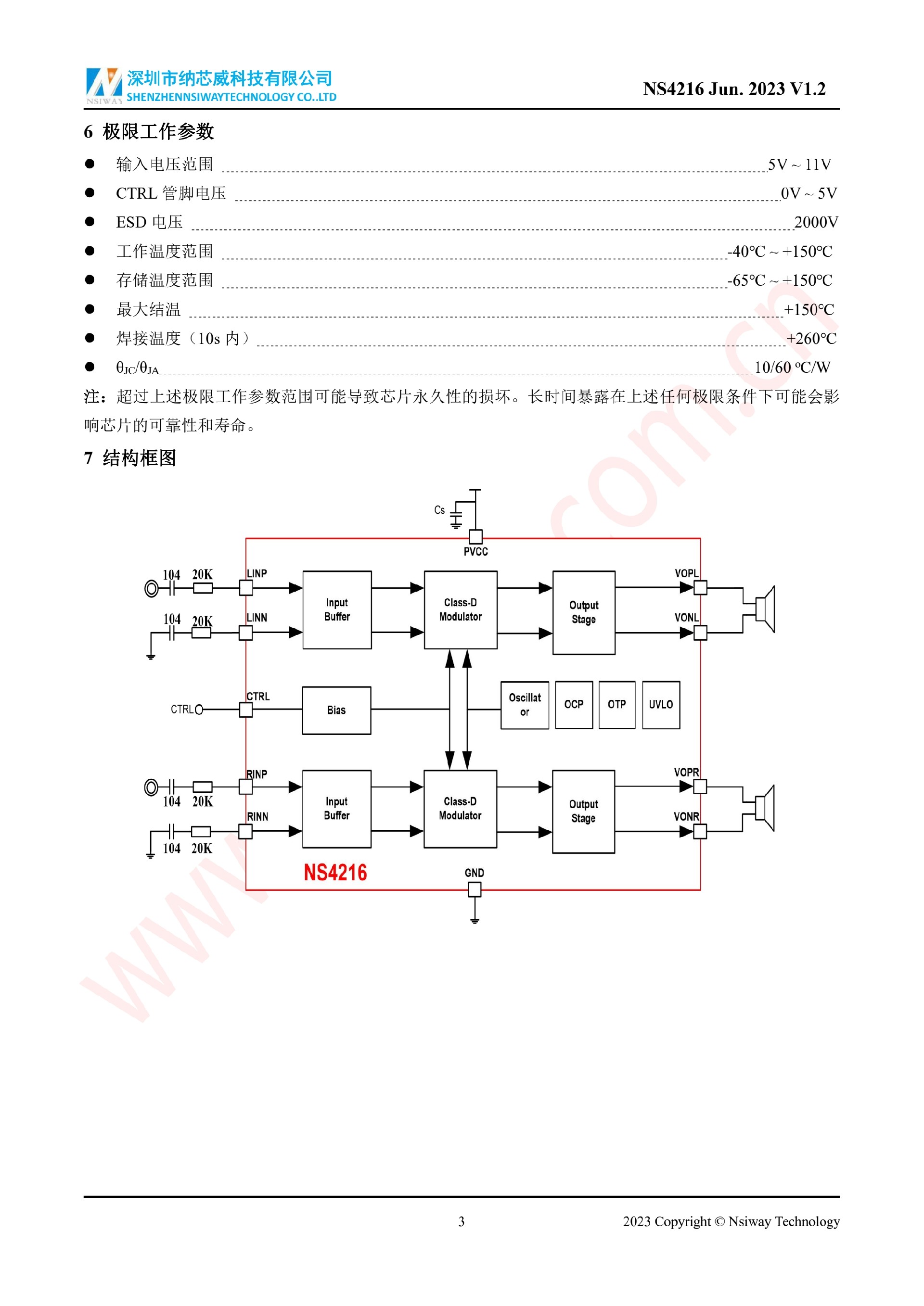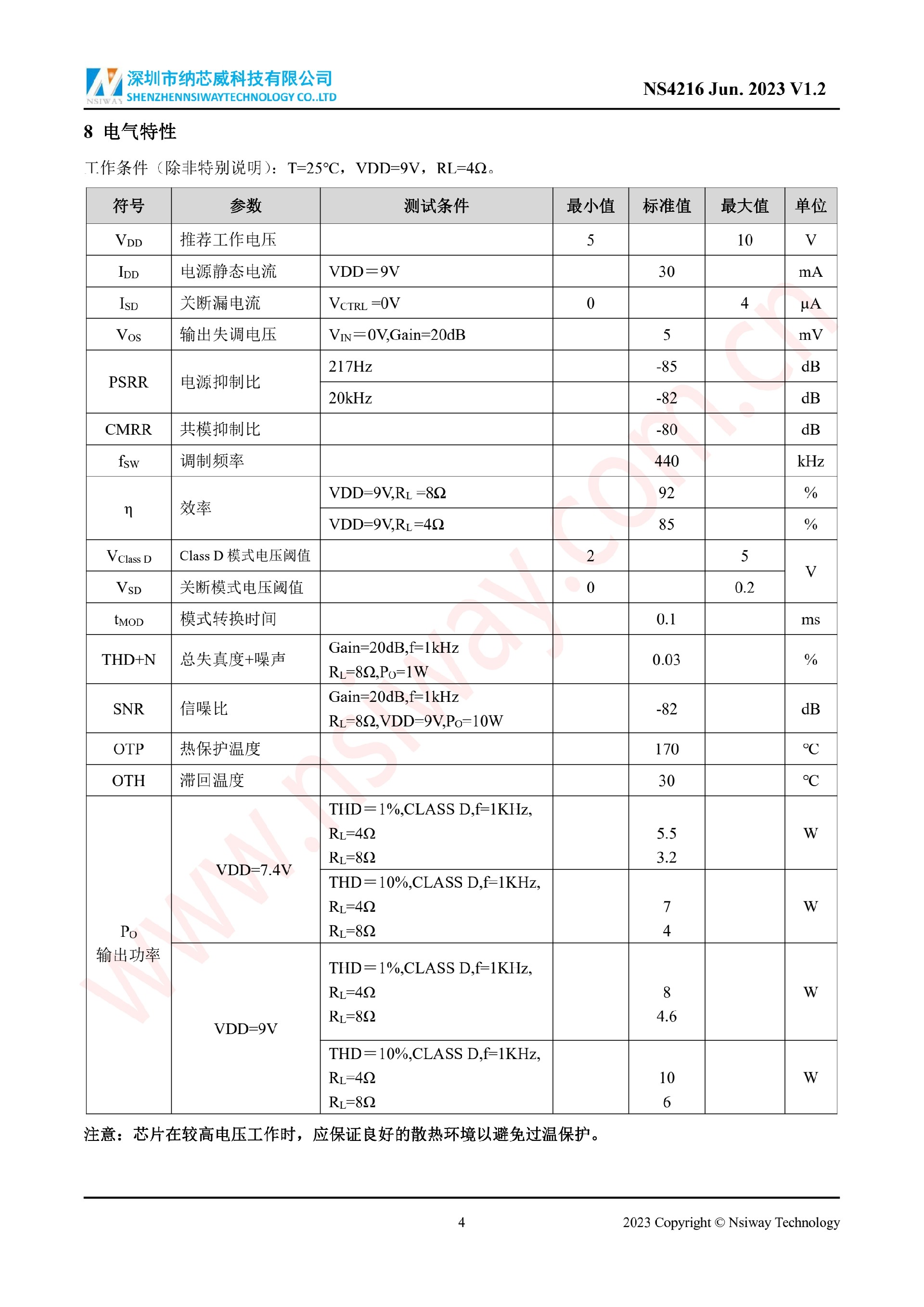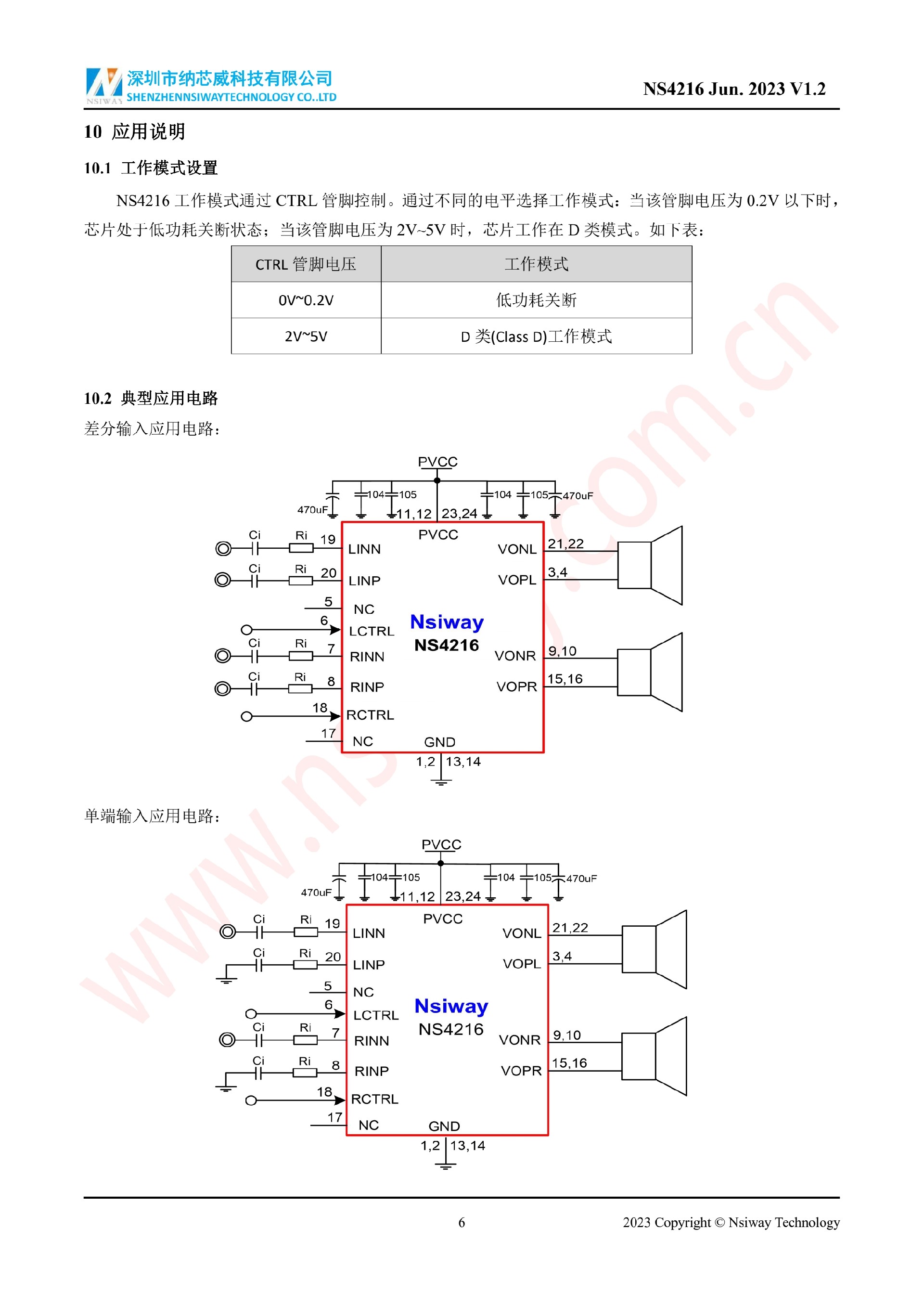 NS4216 10W×2 雙聲道 D 類音頻功率放大器