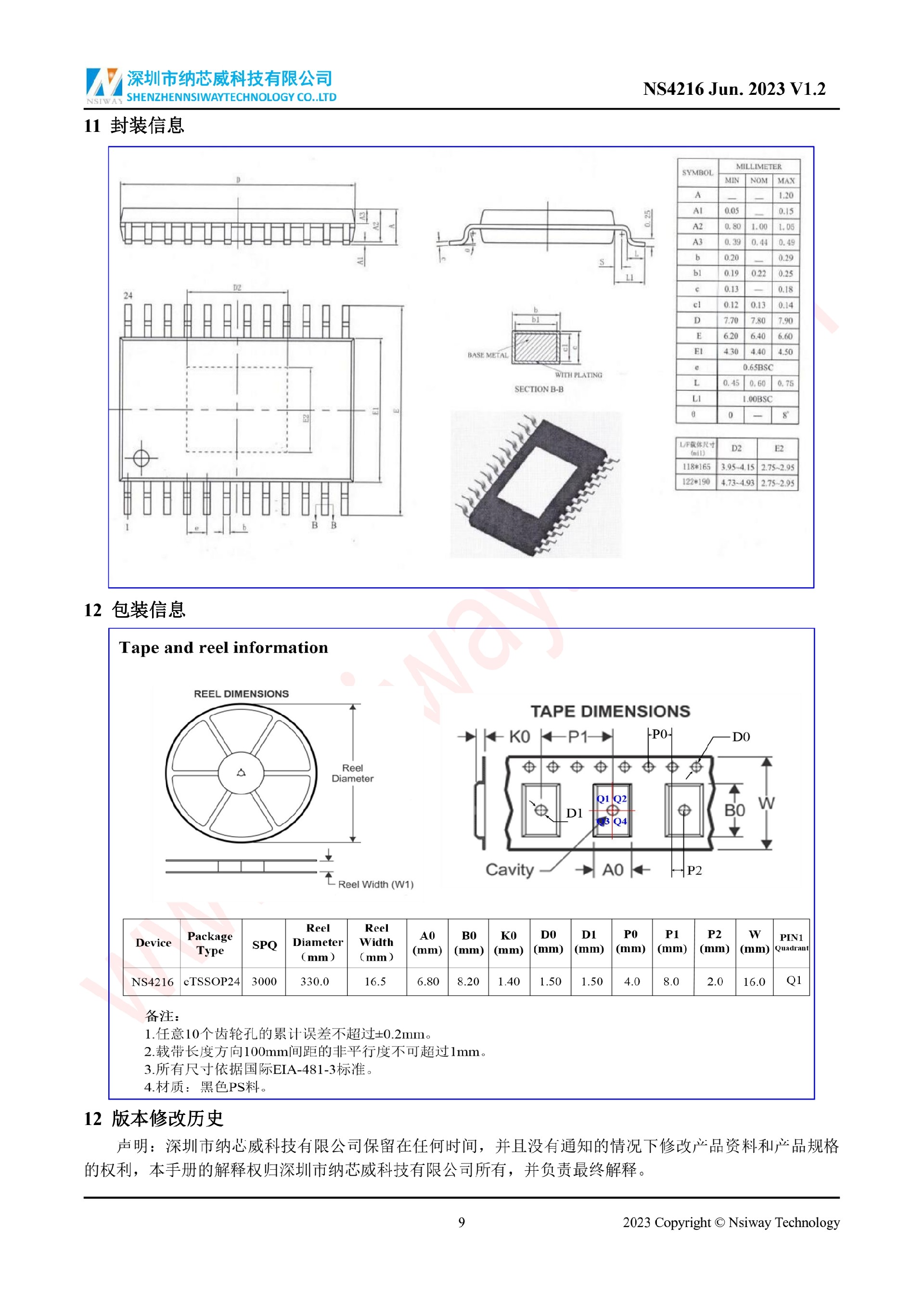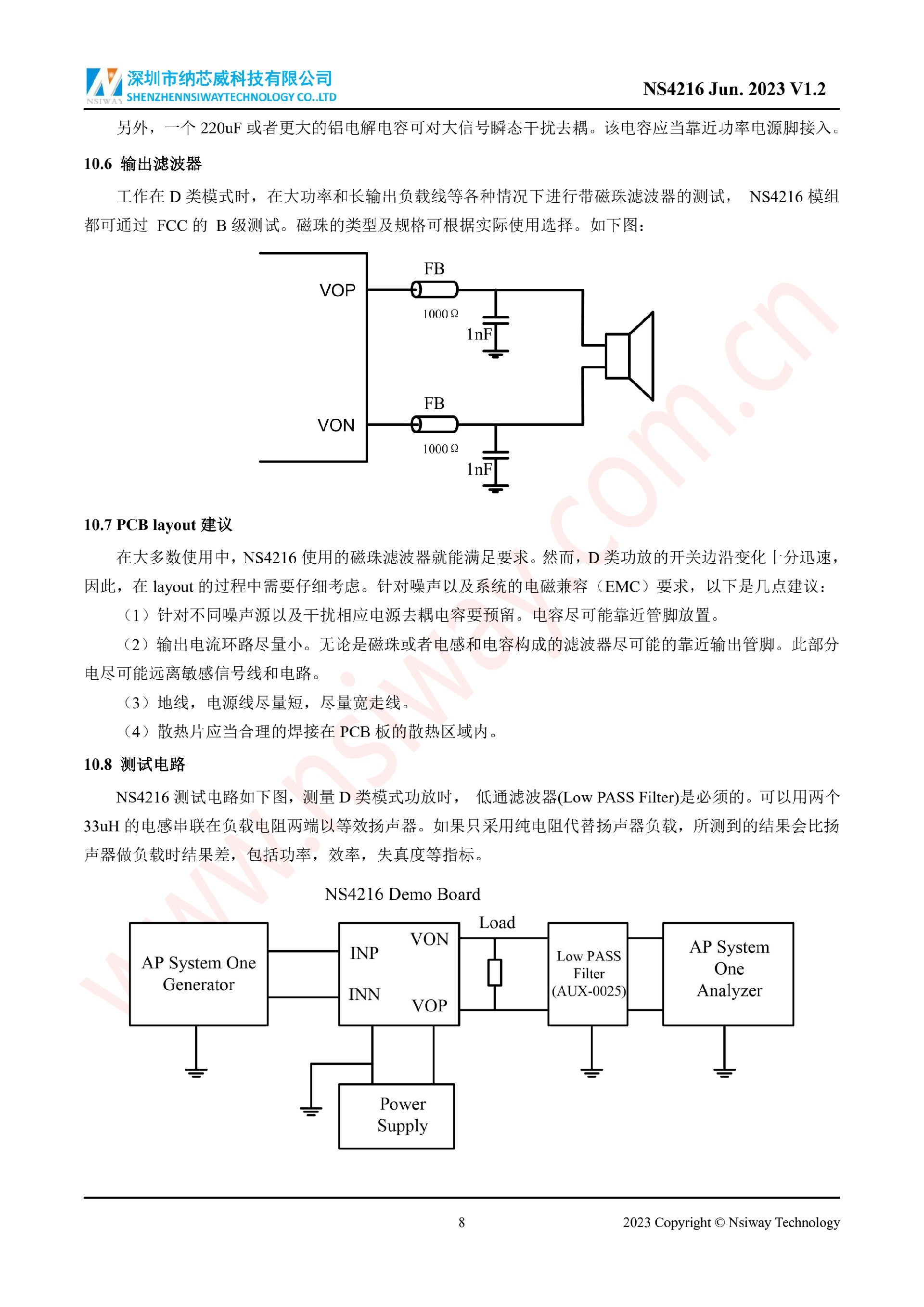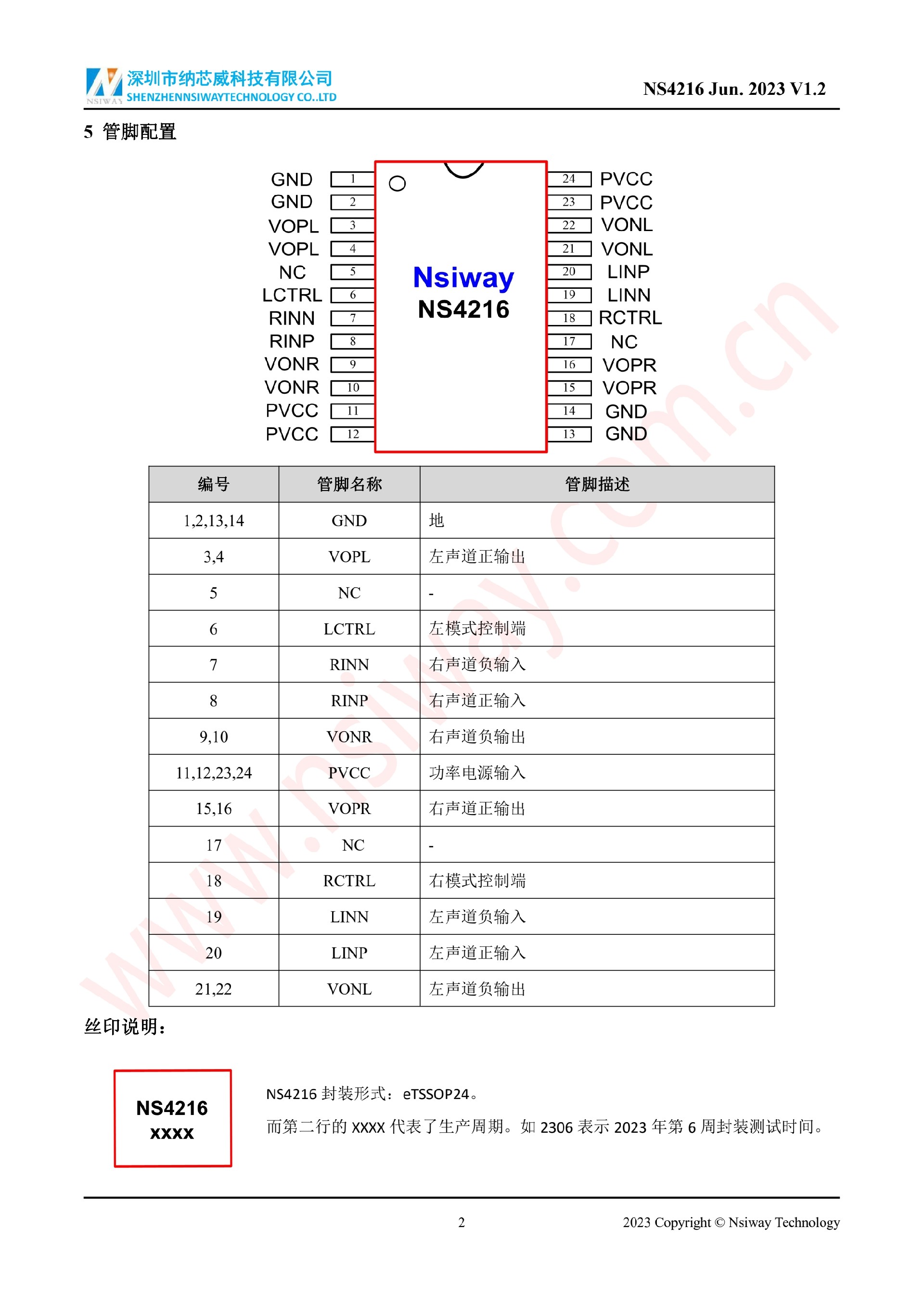 NS4216 10W×2 雙聲道 D 類音頻功率放大器
